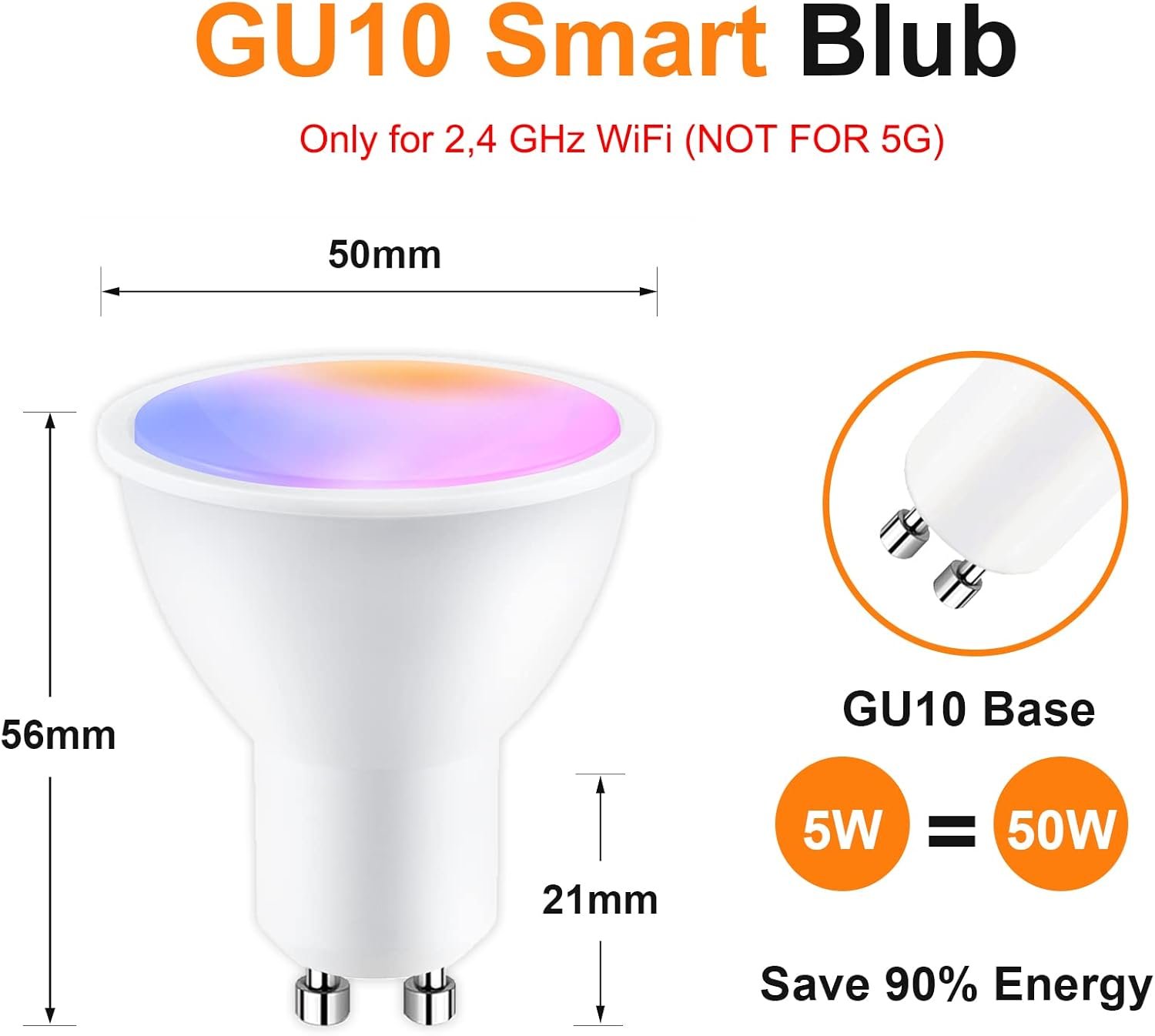 【Energieeinsparung】: Die Wlan Guhbirne Gu10 Besteht Auser kunststoffbeschichtung Mit Einer Guten Wärmeableitung. Sterben 5W Güchlampen entspieren den Traditionellen 50W Güchlampen, sterben bis zu 90% Energie Sparen, Etwa 20000 Stunden Arebeiten.
