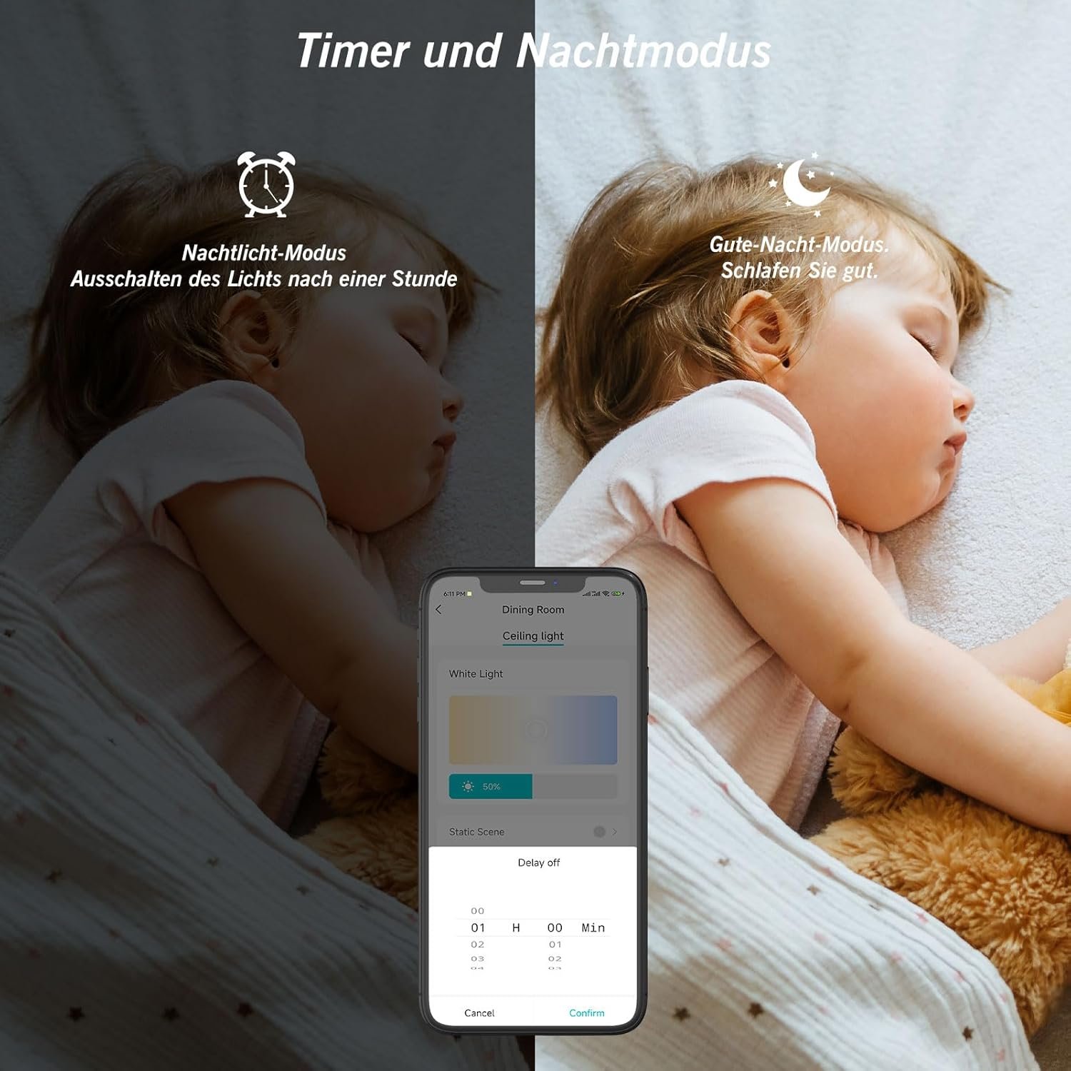 【Intelligente Timer-Fungion】 Die Decknleuchte ist mit Einer Praktischen Timer-Fungion Ausgestattet, Die es Iehen Ermöglicht, Die BeleUteutze nach Ihrem Zeitplan Zu steuern. Sie Kön Können die Leuchte so Einstellen, Dass Sieich Automatisch Zus Best Zeitin Ein-und AusSchaltet, war Iren Zeit und Energie Spart.