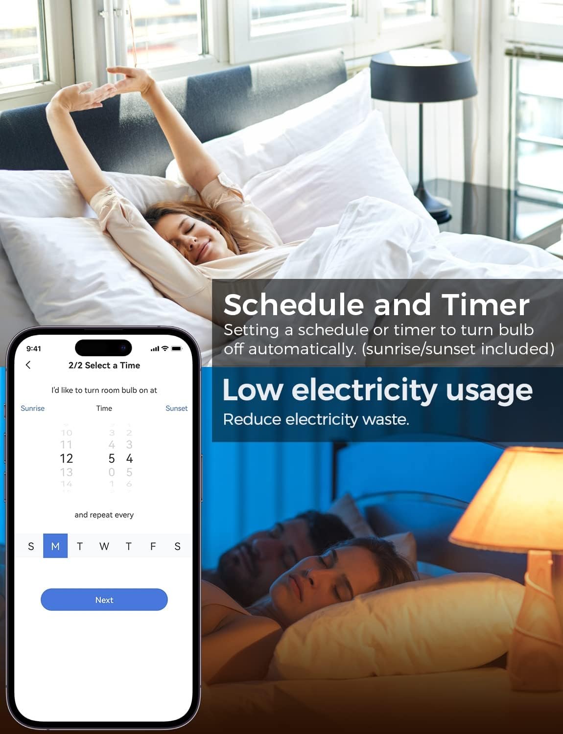 Zeitplan und Timer: Wlan Guhbirne Verfügt über Timer- und Zeitplan Einstellungsfunktion, MIT der Die LampesprePrechend Ihrer VoreingEntellten Zeit Automatisch Ein-und-Au-Ausschaltet-Werden-Kann. Sparen Energie.