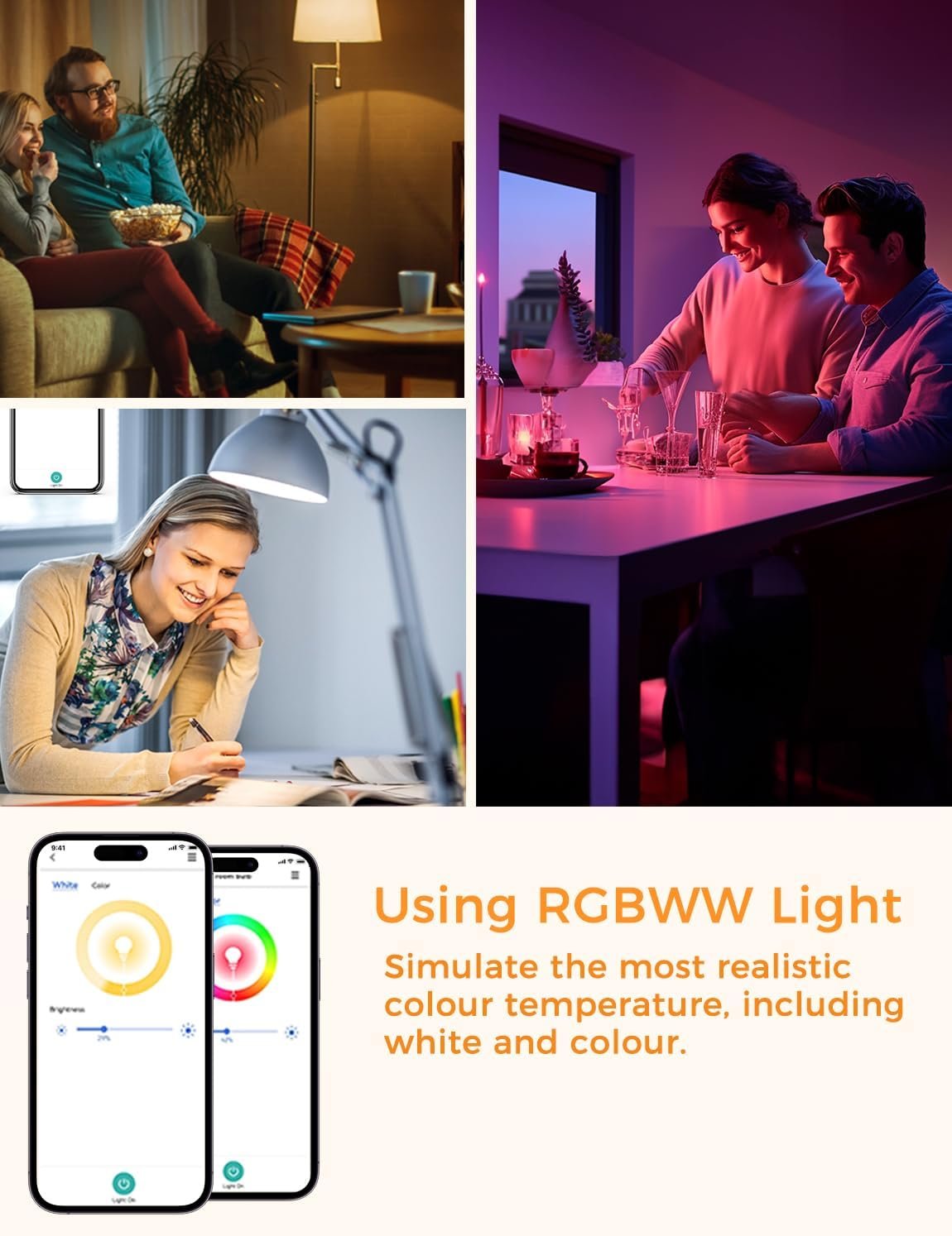 Sprachsteuerung: Hey Siri, Schalte Das Licht Ein. Sie Kön Können Jede Farbe über die Sprachsteuerung ein und auusschalen-oder Die Farbe Einstellen / Änder. E27 Wlan Birne ist mit Alexa Oder dem Google -Assistent Kompatibel.