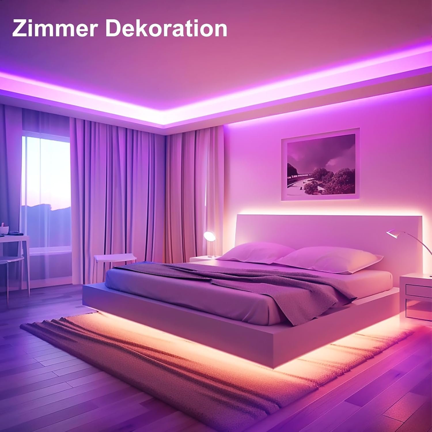 【Flexible Installation】 Derser -LED -Streifen 5m Selbstklebend Bietet den Vorden, Dass ER Flexibel ist und eine stelleninstallation Werden Kann, WO HERKÖMLICHE Leuchten Nicht Angebach Werden Können. MIT Dieser LED Lights Können Sie Mit Ungewöhnlichen Lichteffekten Atmosphärre Schaffen.