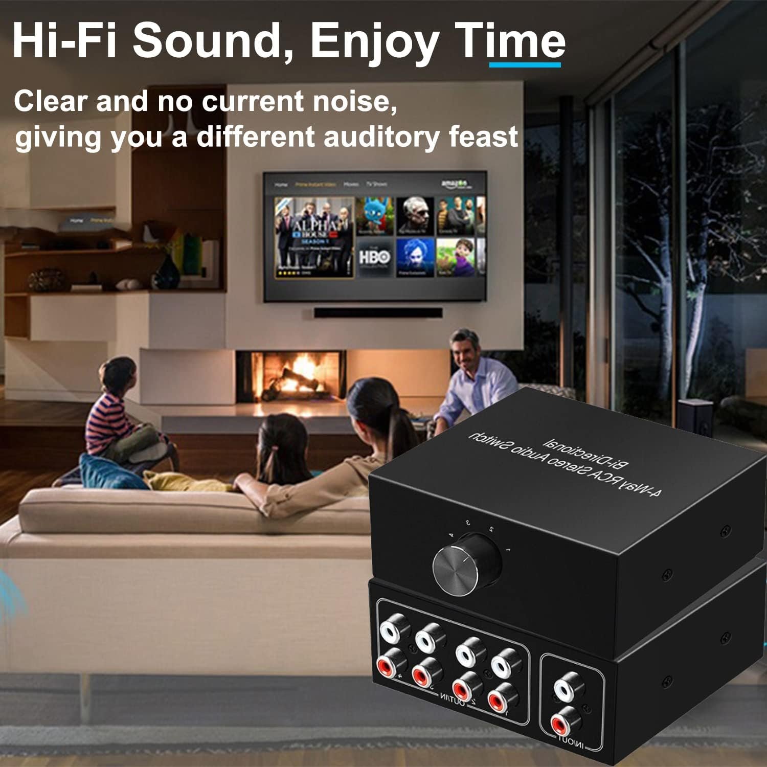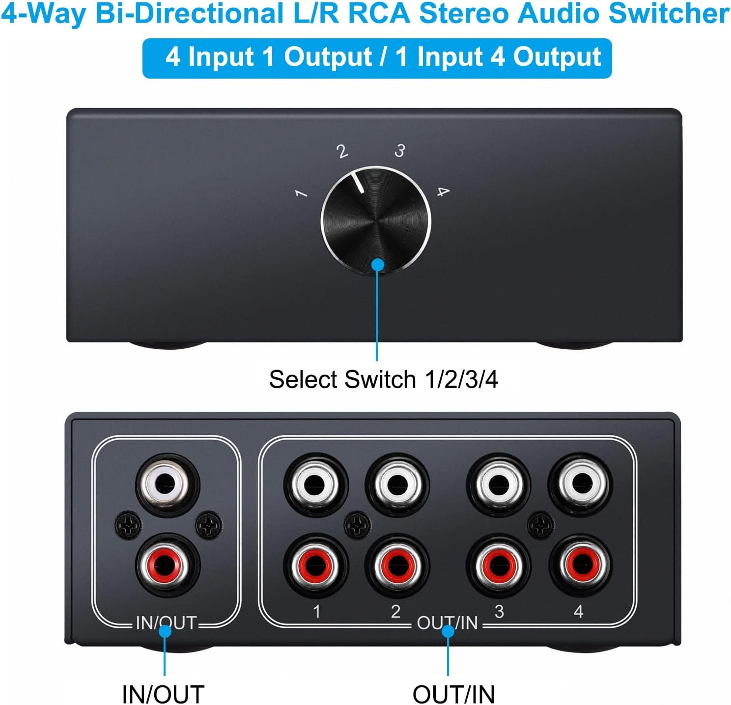 4-WEGE BIDIREKTIONAL L/R RCA STEREO-Audio-Switcher, 1 in 4 Out Out 4 in 1 Out, L/R Sound Channel Audio Splitter Audio Selector Switch Box Für DVD Stereo Lautspecher CD-Player
