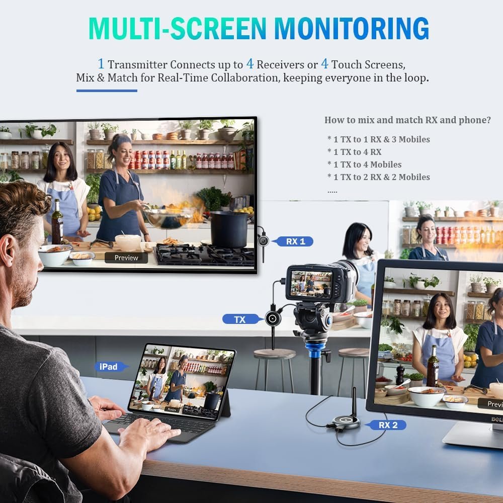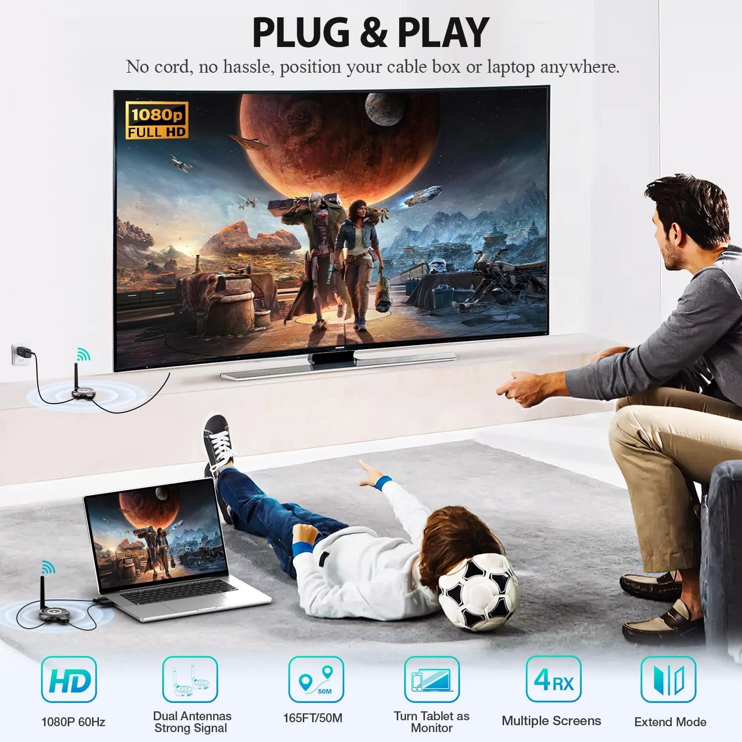 【BREite Kompatibel】 Dieser Drahtlose Hdmi-Extender ist mit dem Meiisten Hdmi-Geräten Kompatibel, Wie z. B. Hdtv, Projektor, Monitor, Laptop, PC, MacBook, Kamera, Set-Top-Boxen, Kabelbox, Blu-ray-/DVD-Player, Ro-Ku, Satellitenboxen, Spielekelsolen und Mehr. Es GEWIEHRLEISTET EINE NAHTLOSE UND STABILE DRAHTLOSE VERBINDUNG ÜBER MEHRERE BILDSCHIMME Hinweg. Tauchden Sie Einfach in Unterhaltung ein Wie Nie Zuvor