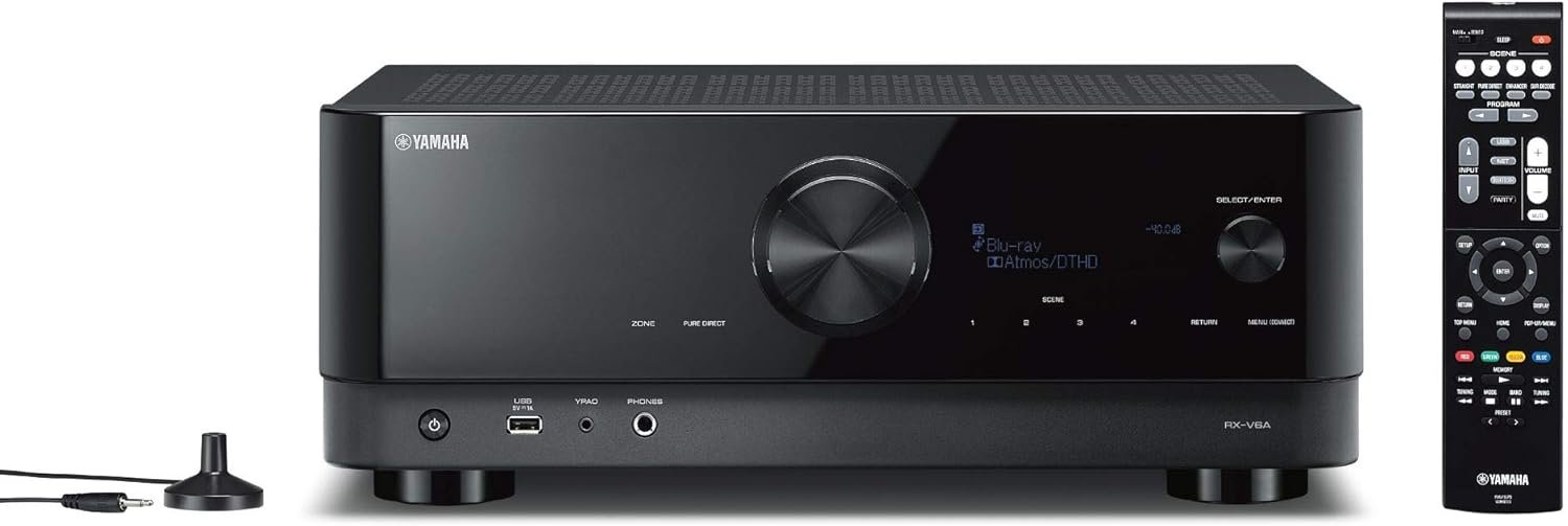 LEFEFERUMFANG: RX -V 6A A/V -Empfänger in Schwarz von Yamaha – inkl. RSC Einmess-Mikrofon / HiFi-Receiver unterstein HDR10+, 8K, Dolby Atmos und Gaming Funktionen / Einfache-Installation über App über App über App über App über App