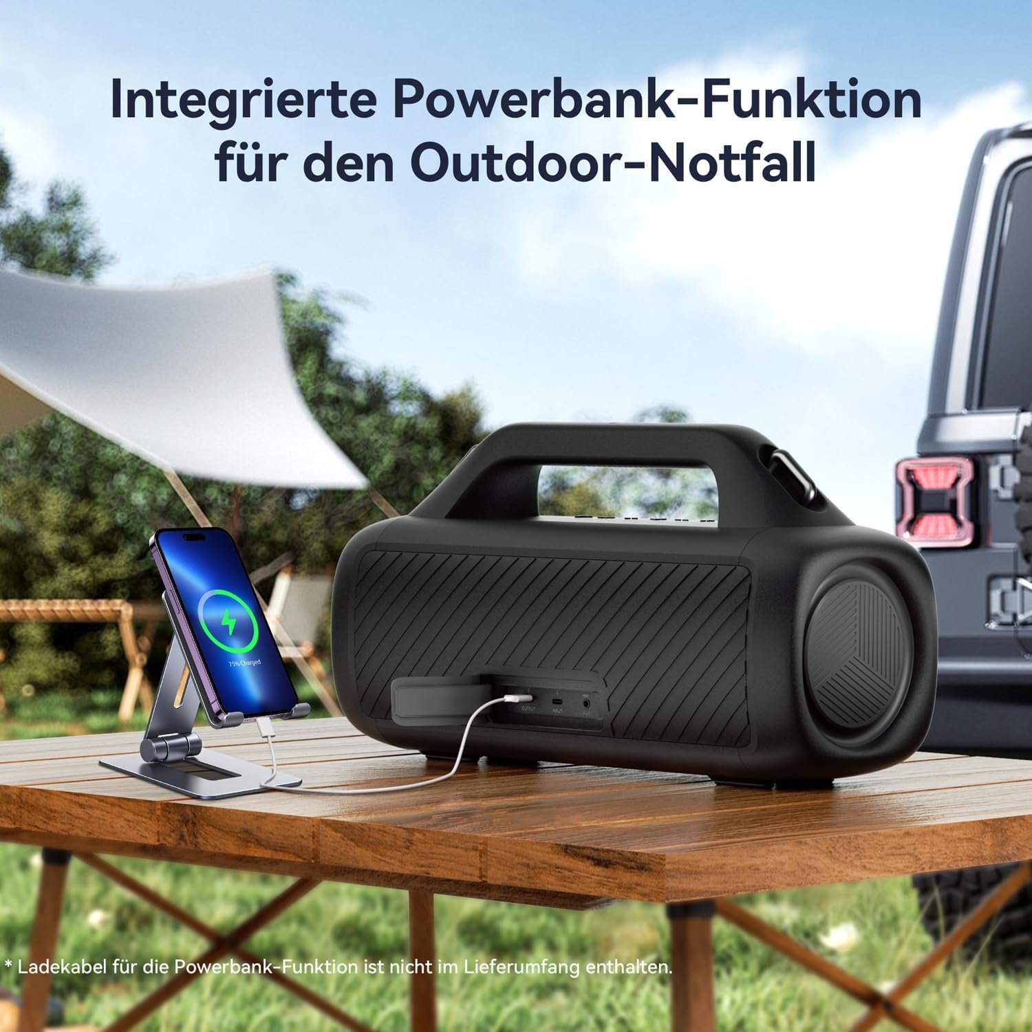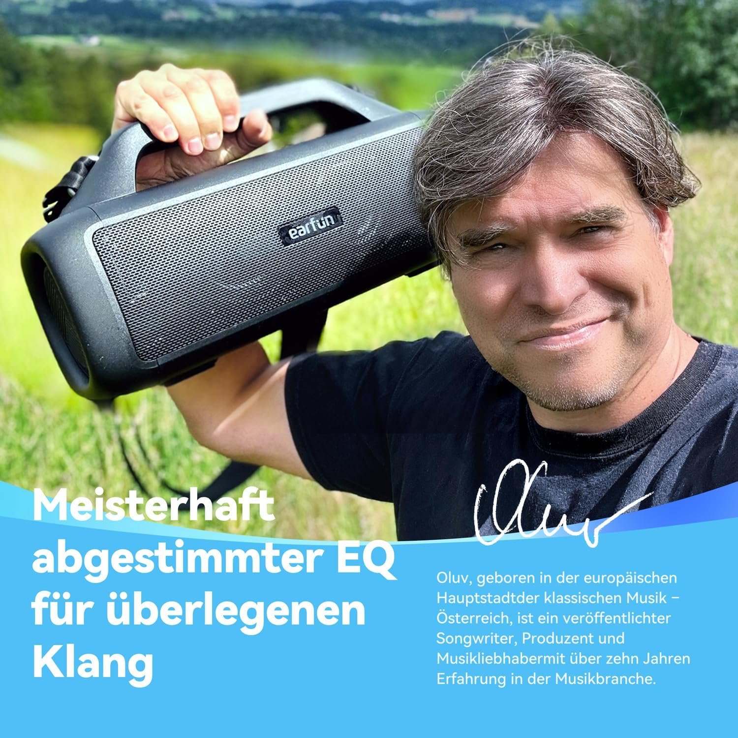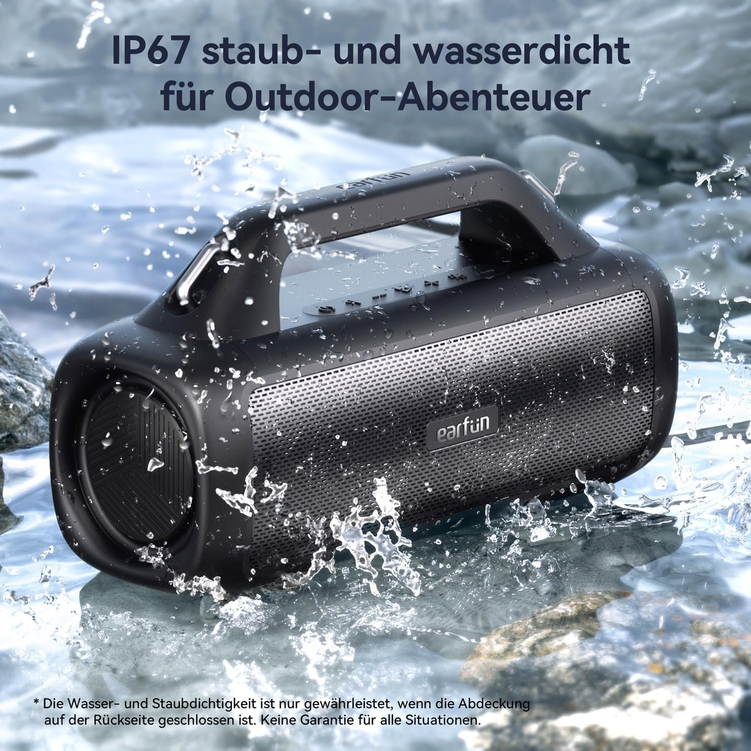 Earfun Uboom X Bluetooth Lautsprecher, 80W Bass, Jumbobass Tech, Oluv Eq, 30 Std Akku, IP67 Wasserdicht & Staubdicht, RGB Lichter Musicbox Bluetooth, Power Bank, BT 5.3, Tragbart Lautspecher Fürr Party