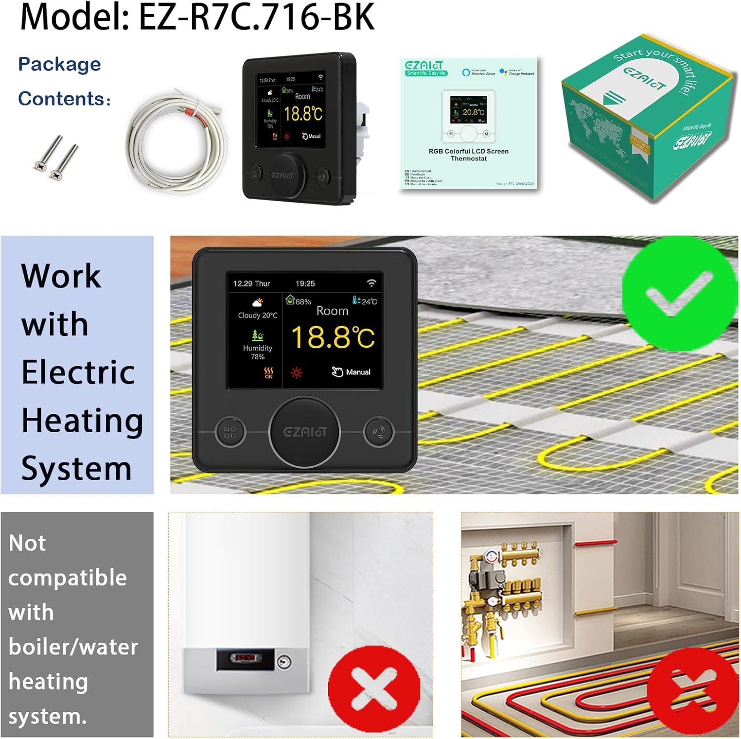 【Anwendung】 ✅ezaiot Smart Thermostat , Wandgerät für Temperaturregel der Elektellen Fußbodenheizung. Es kann elektische heizprodukte (16a max.) Wie Elektrische Heizkabel/Folie/Matte usw. Steuern.✅der Thermostat Benögt AC Live (l) und neutral (n) Drehte. Er Wird MIT AC100 ~ 240V BRIEBEN. Erungstüttt Keine Batterieversorgung.
