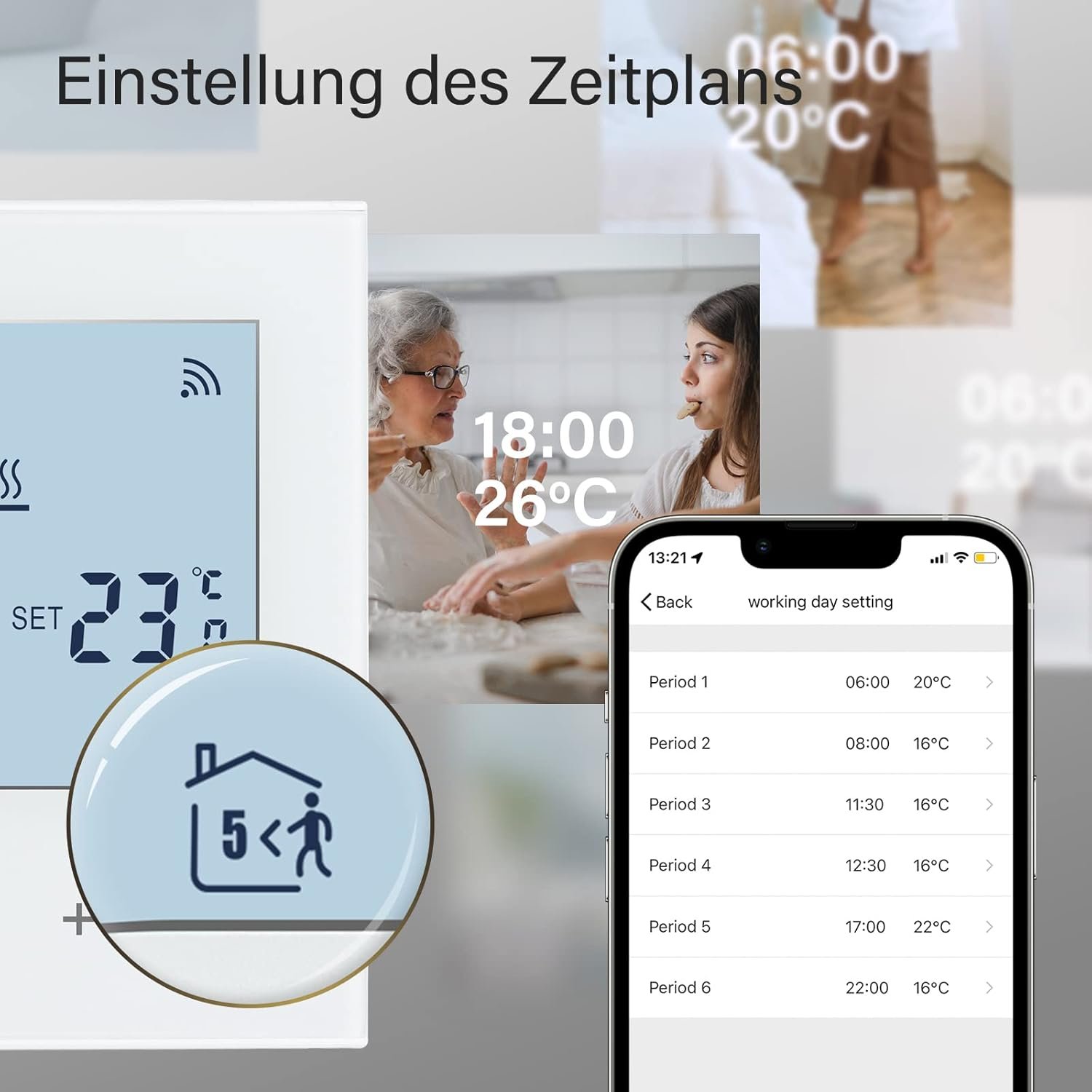 Beok Wifi Raumthermostat Fußbodenheizung, Wasser Heizungsthermostat Smart Home Thermostate Fussbodenheizung Thermostat Digital Interputz Kompatibel Alexa, Google Home, 3A 230V TDR89W-WiFi-wp Weiß