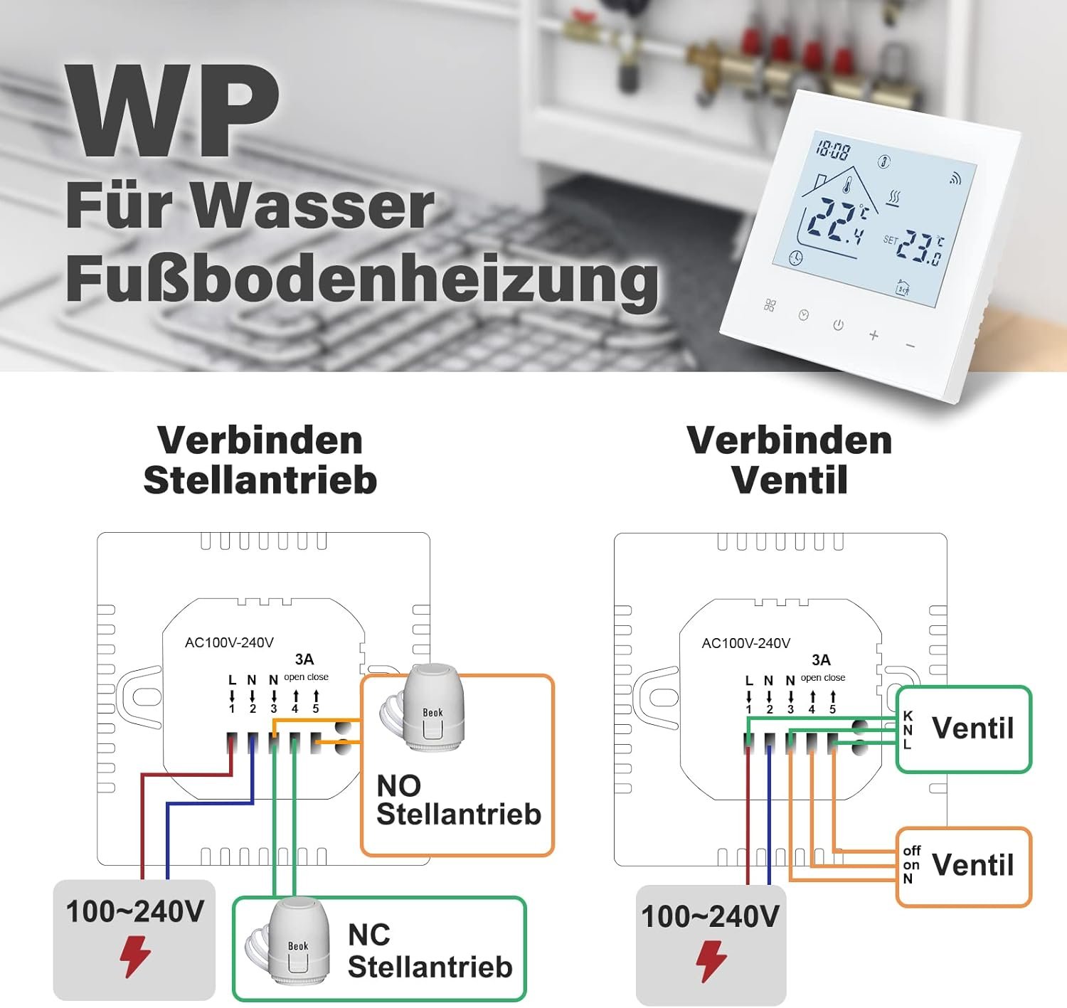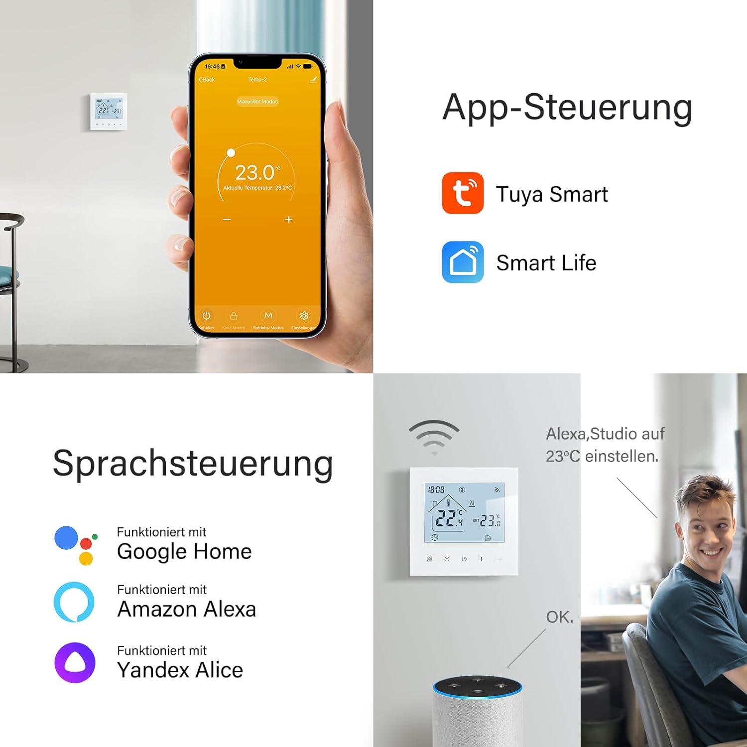 Intelligente Wlan-Heizung: Geeignet für Wasser-Fußbodenheizungen Wie Thermokopf, Elektische Lüftung USW. Steuern Sie Dastraumthermostat von überallall und Jederzeit der Smartphone-App „Tuya“.