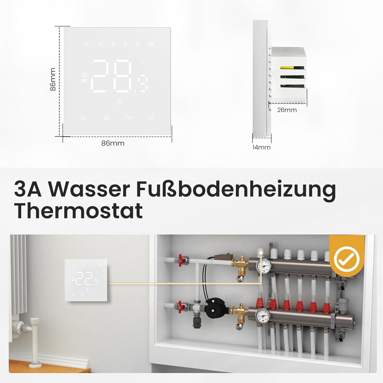 Miucda Smart Thermostat Fussbodenheizung Wasser, Tuya Wifi Heizungsthermostat Smart Digital Digital Raumhermostat Kompatibel Mit Alexa, Google Home