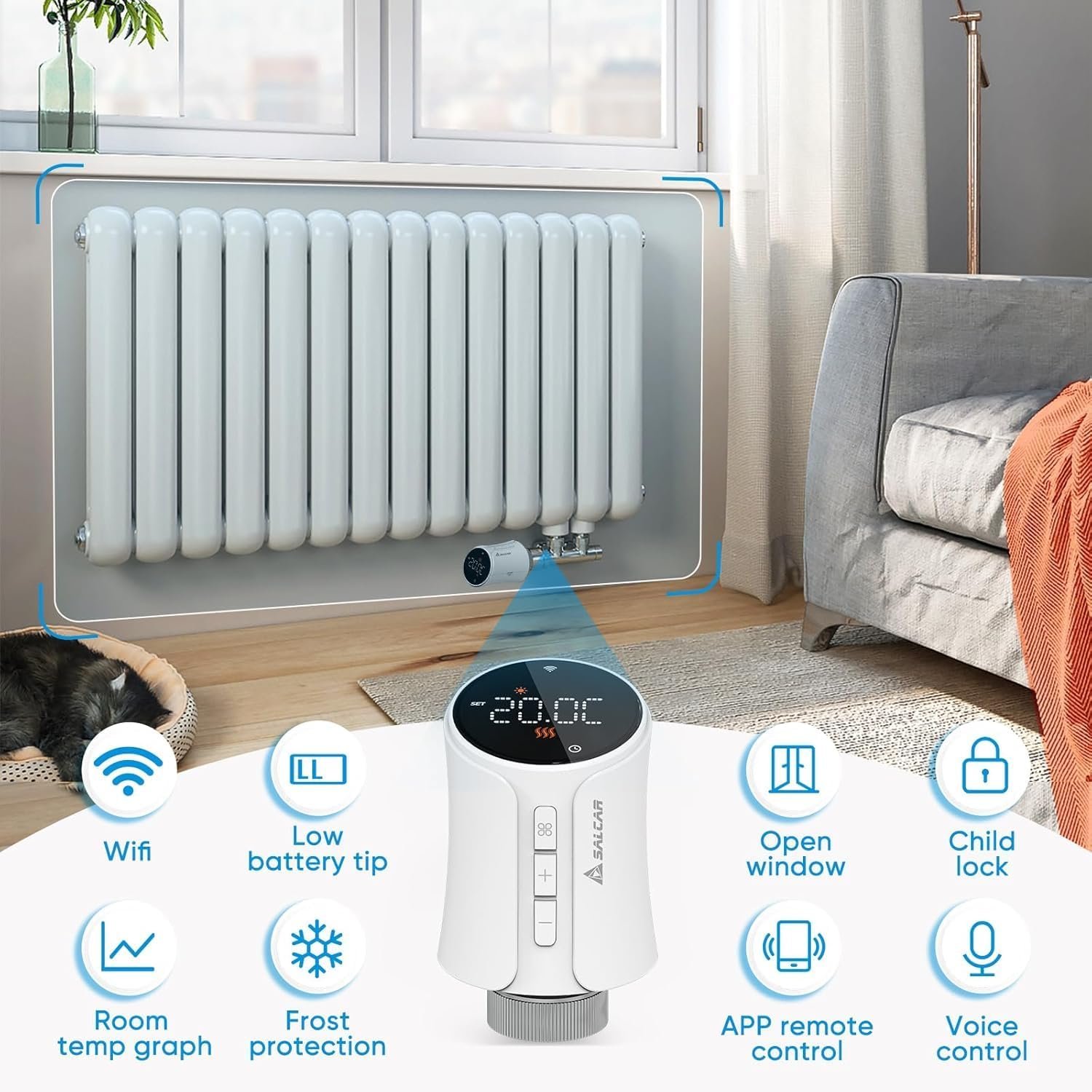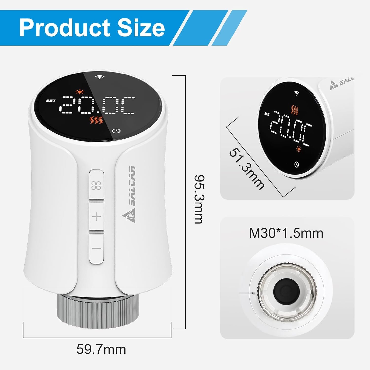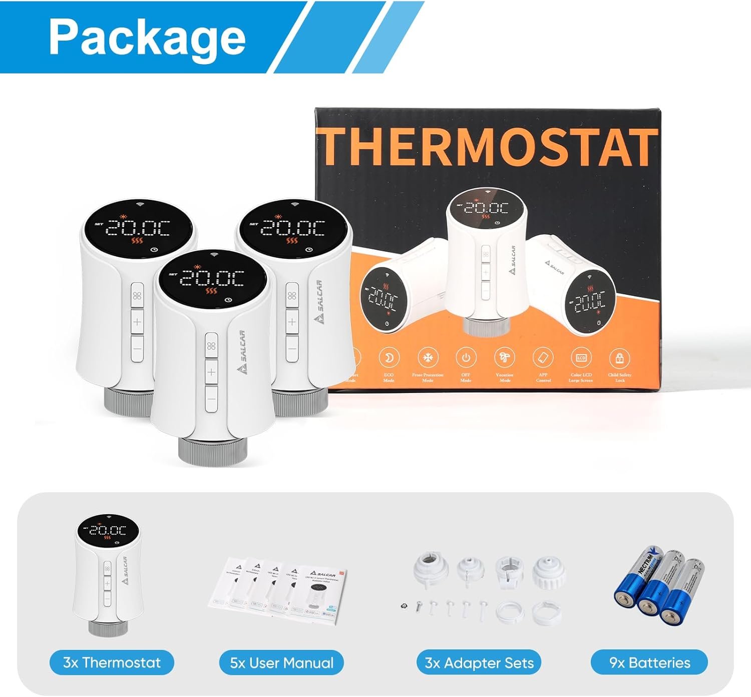 Salcar Smart Heizkörperthermostat TRV706W 3er Set WiFi Thermostat Kompatibel Mit Amazon Alexa & Google Home Programmierbar Tuya Heizungsthermostat Smartes Heizkörper Mit 9x Batterien