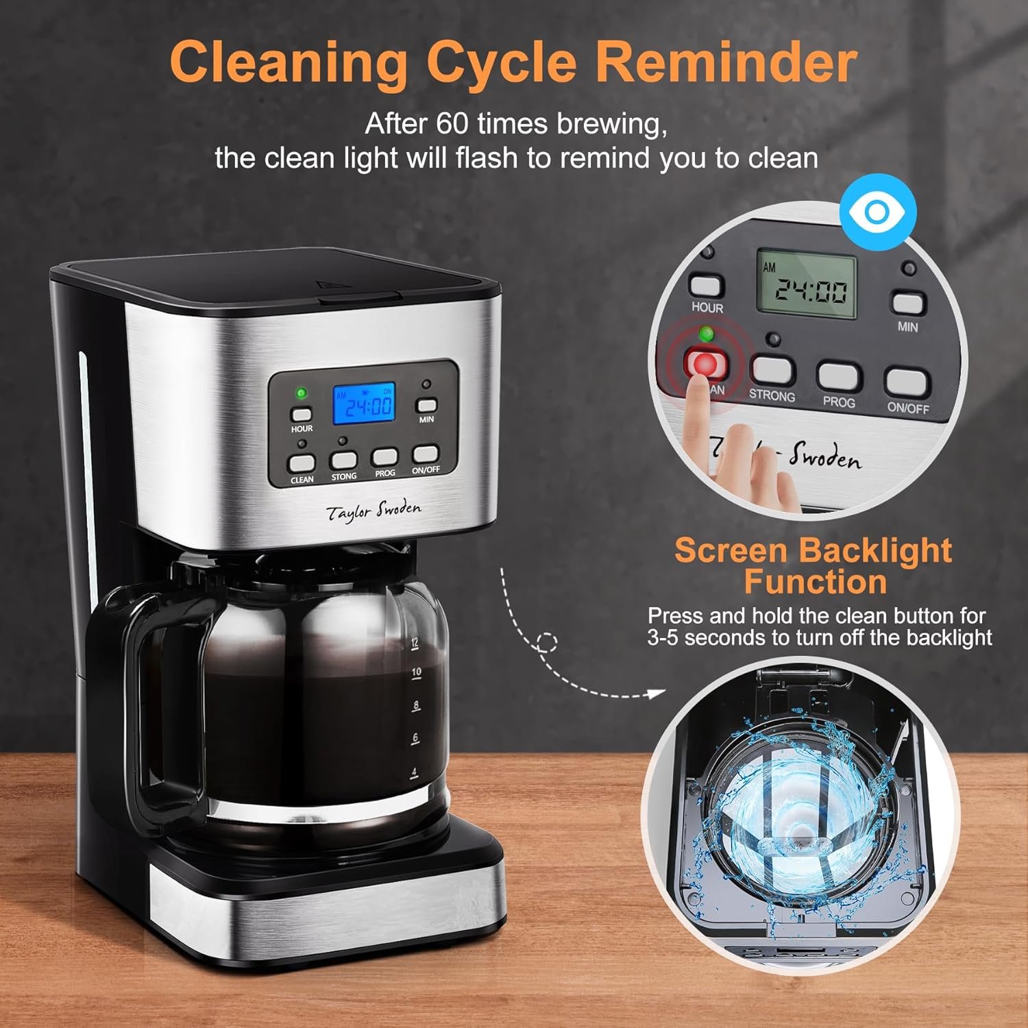 Taylor Shoden Darcy-950W Kaffeemaschine MIT Timer, 1,5L Filterkaffeemaschine 12 Tassen, Abschaltomatomatik, Tropf-Stopp, Wiederverwendbarem Filter und Heizplatte, BPA-Frei, Schwarz