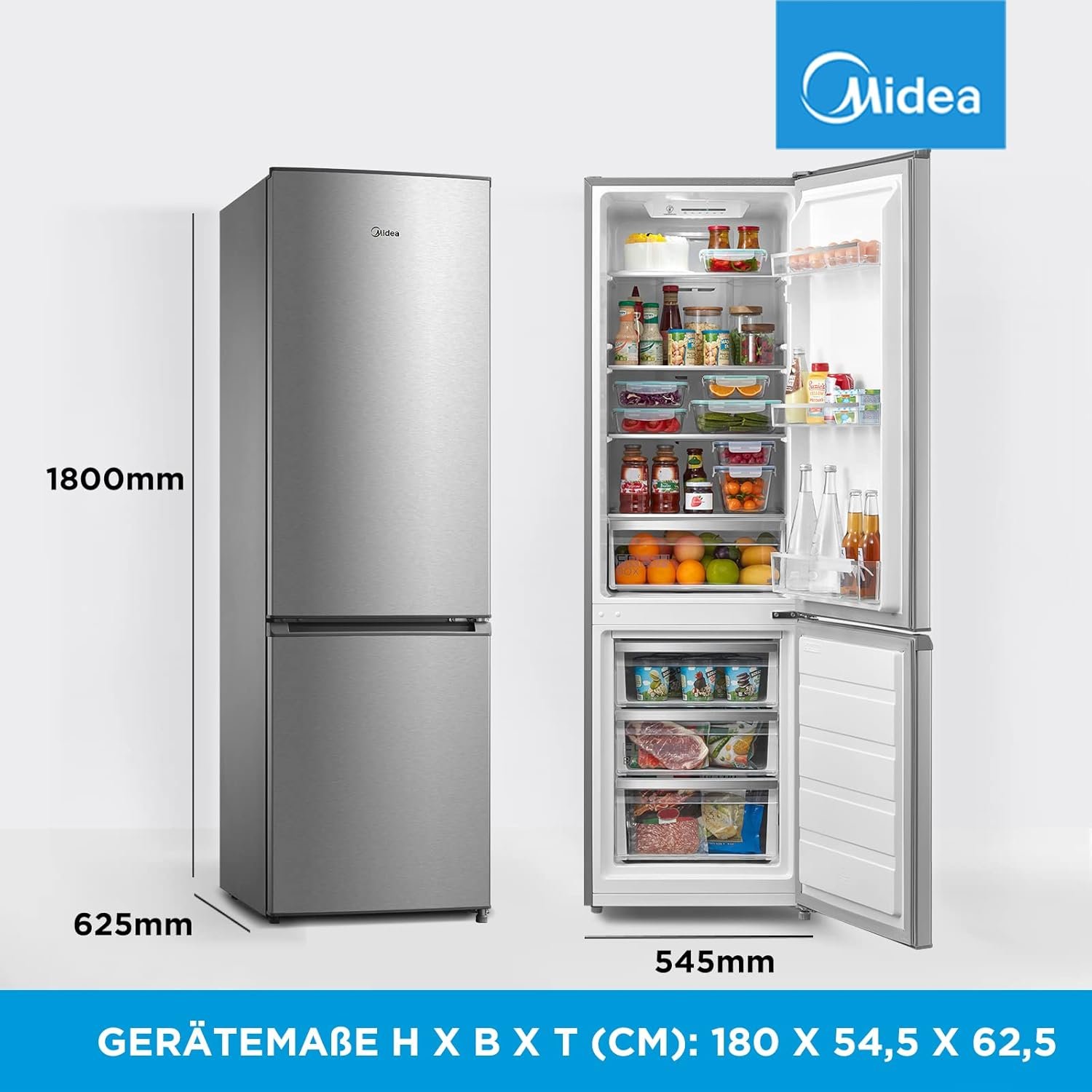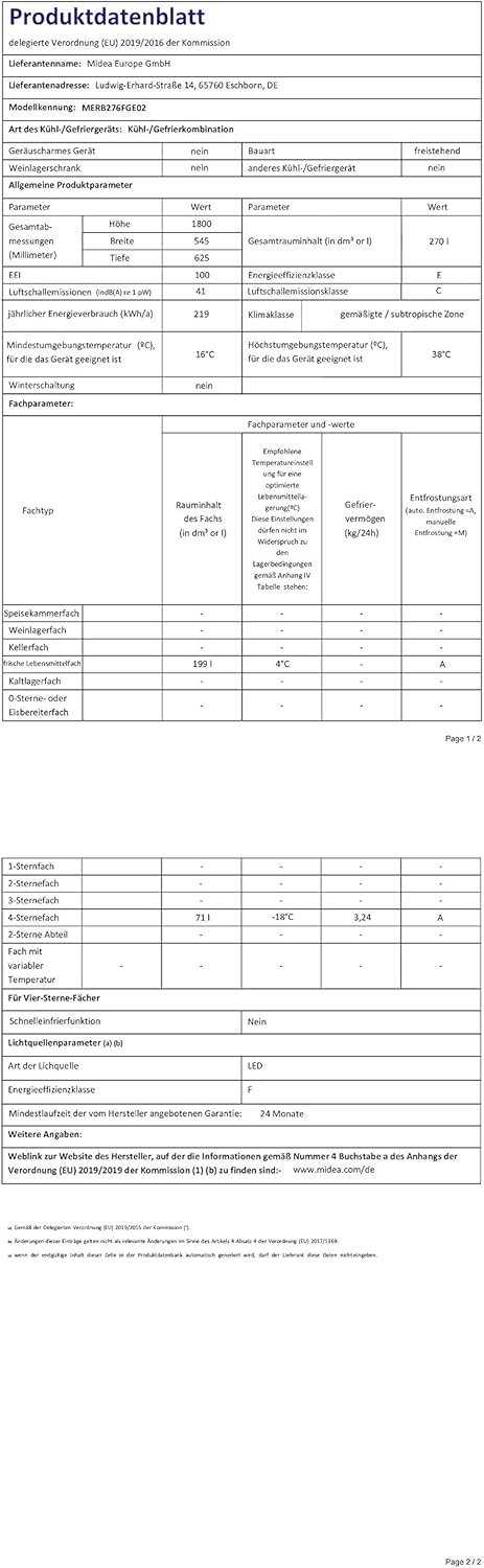 Minea merb276fge02a Kühl-/Gefrierkombination/180 cm Höhe/nofrost/doppelte steuerung/Super-KÜHLFUNTION/219 KWH/JAHR/199L KÜHLEIL/71L GEFRIERTEILILE
