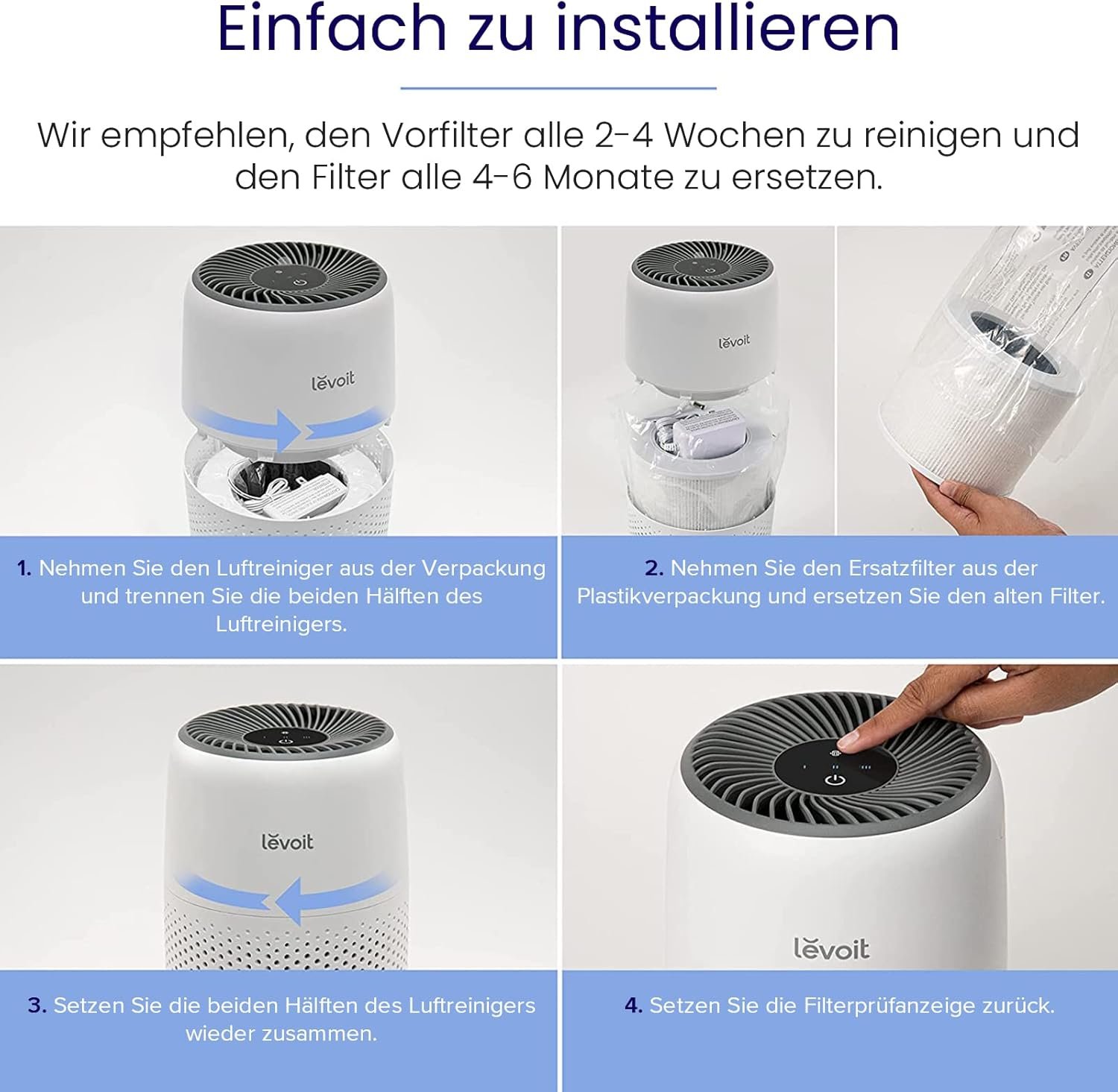 Filterwechsel: Entferner sie Die Plastikverpackung VOM -Filter vor der Nutzung; Wire Empfehlen den Filter Alle 4 bis 6 Monate Auszutauschen, um Die Leistung des Luftreinigers Zu Erhalten; Suchen Sie nach „B09FK5PN4H“ für Mehr Filterdetails und SETZEN Sie Den Filter nach demwechsel Zurück