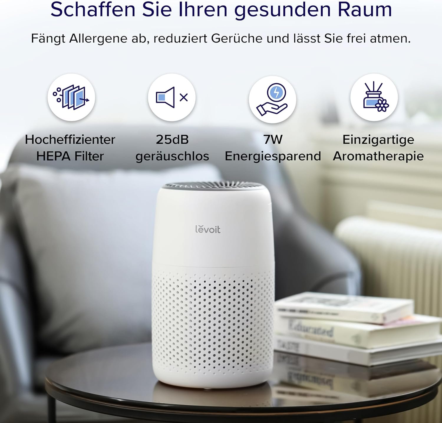 Levoit luftreiniger Allergiker Mit Aromatherapie, Hepa Luftfilter Gegen Schimmel, Staub und Tierhaiare bis Zu 0,3 µm für Schlafzimmer, 7 Watt Energiesparg, 3 Geschwindigkeiten, 25db, Weiiß