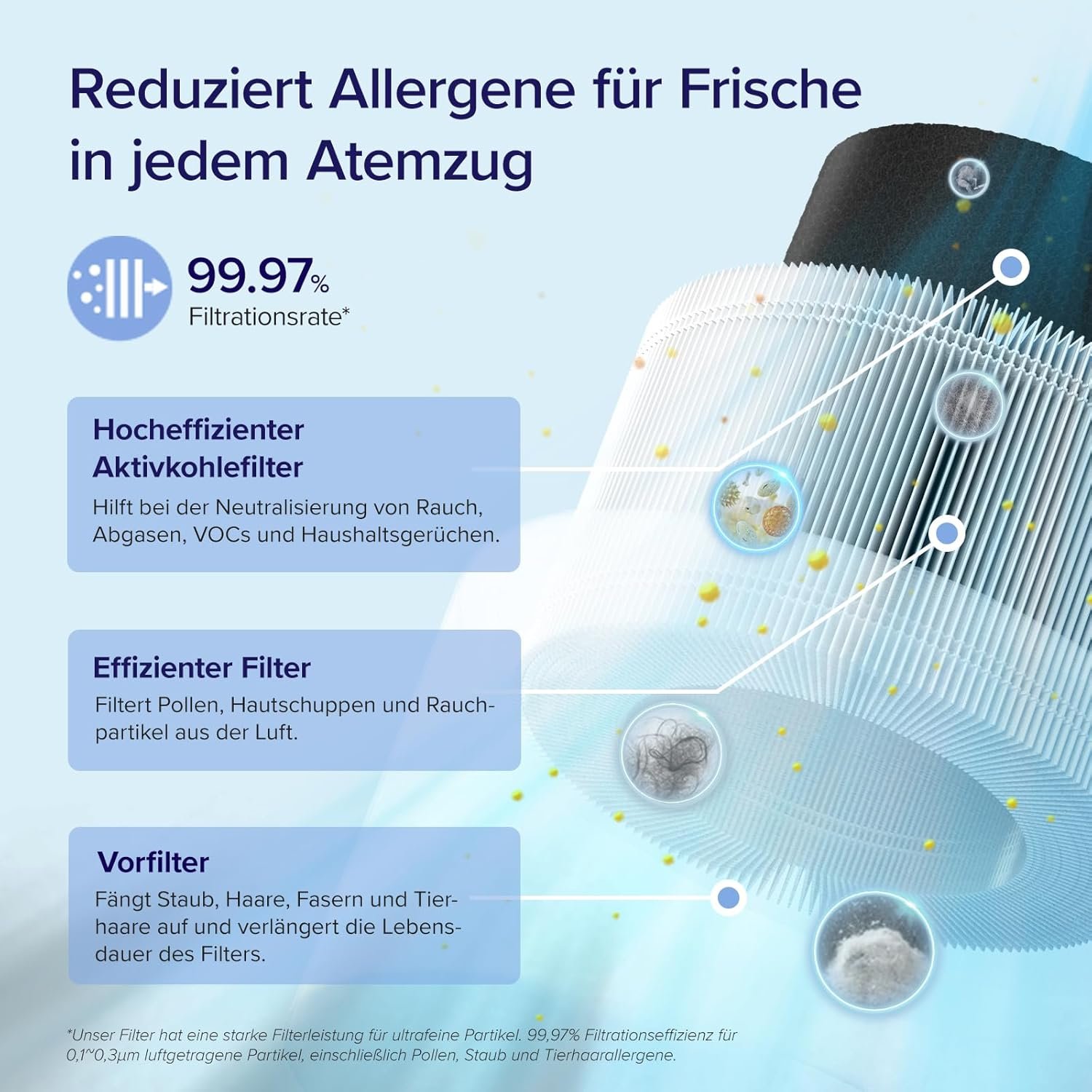 Verbessertes 3 in 1 Filtersystem: Hepa-, Aktivkohlefilter und Vorfilter vernen Schadstoffe Mit Grö