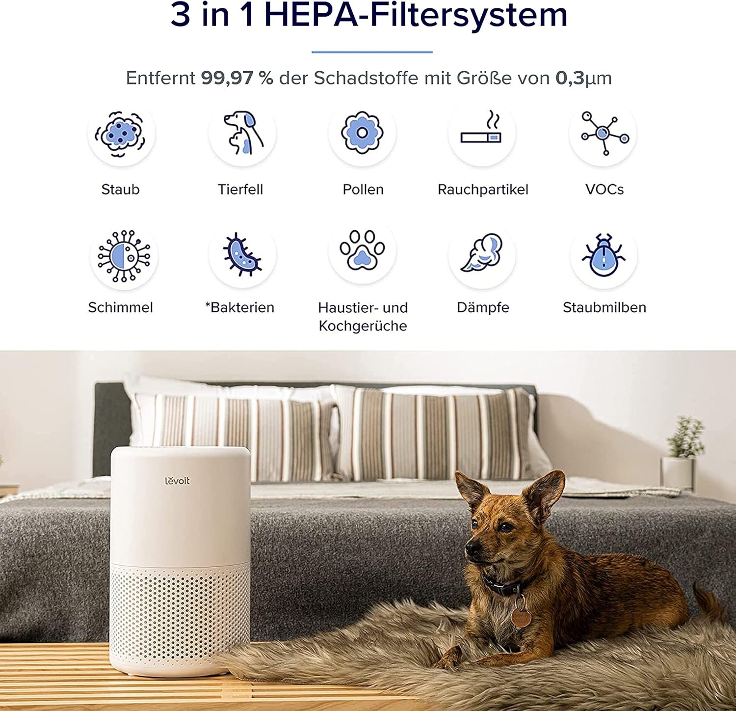 Levoit luftreiniger Hepa Filter für Allergiker, Luftfilter Gegen Schimmel Staub Pollen Gerüche, Kader 170 m³/h bis Zu 35㎡ RaucherZimmer, Luftreiniger Schlafmodus nachTlicht Timer, App Strouerung