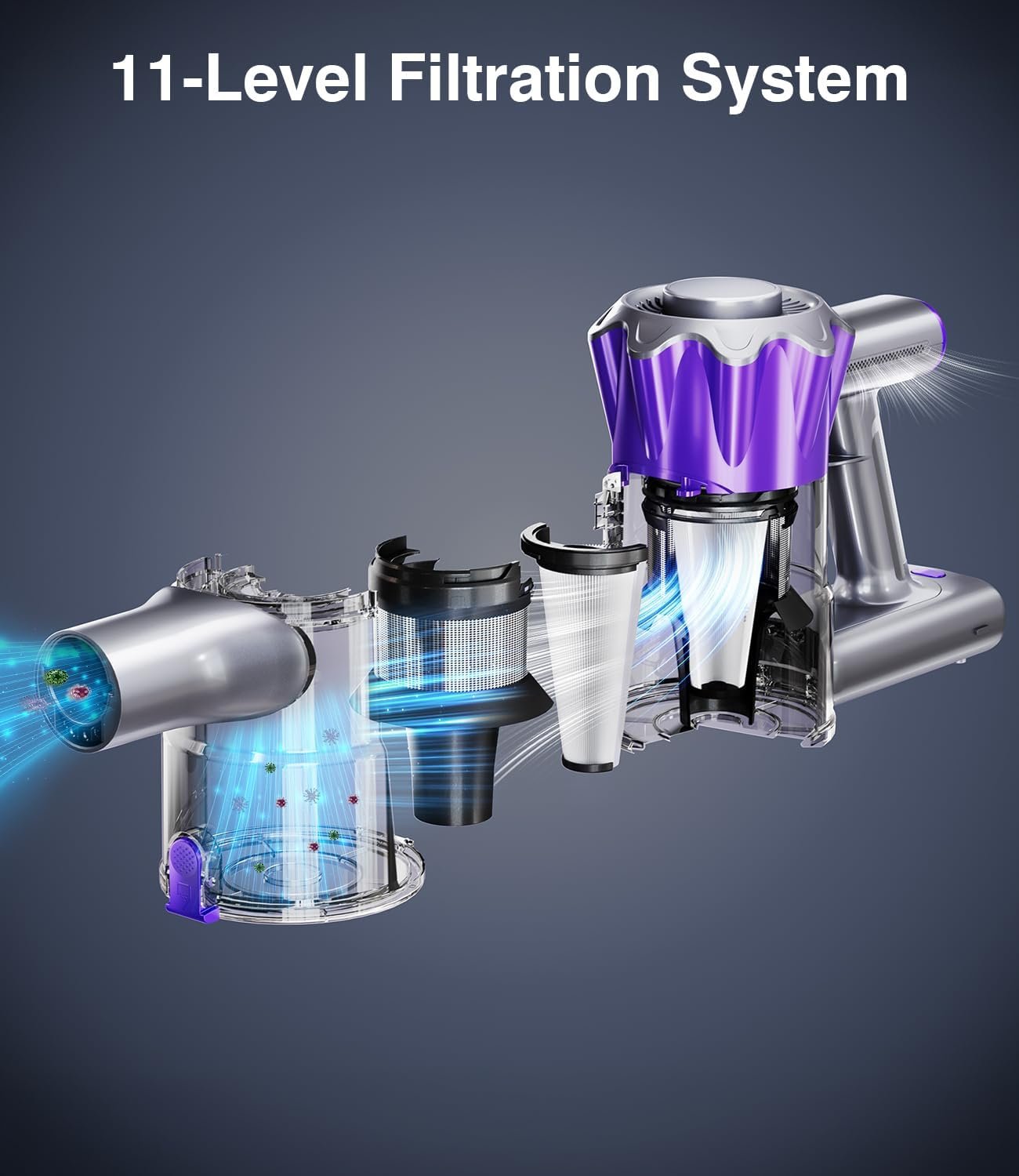 【99,99% Hochwirkame Filterung + 1,5L Großer StaubbeHälter】 Dank der doppelne Wirbelstruktur Bietet Die-Dieser Akku Staubsauger Kabellos e an Noch Stärkere Zyklon-Trennung. DAS 11-Schicht-Filtersystem verkleinert 99,99% Aller Winzigen Staubpartikel, Bakterien und Milben Einer 0,3 μm-Ideal für Fürgiker und Haustierbesitzer. MIT Einem 1,5-Liter-Staubbehälter ist Die Reinigung des Gesamten haut Ein-Kinderspiel.