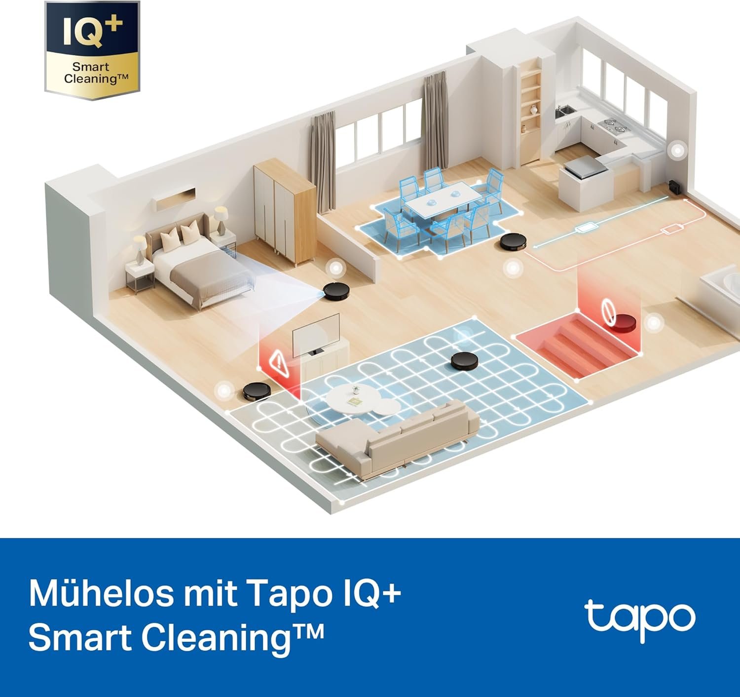 𝐌ü𝐡𝐞𝐥𝐨𝐬𝐞 𝐑𝐞𝐢𝐧𝐢𝐠𝐮𝐧𝐠 𝐦𝐢𝐭 𝐈𝐐+ 𝐒𝐦𝐚𝐫𝐭 – Tapo IQ+ Smart Cleaning Dient Als Das Gehirn des Roboters. Angetrieben von Mehreren Sensoren und Fortschnittlichen Algorithmen, Können Sie Ihr zuhause Beruhigt in Seine Häyn Legen!