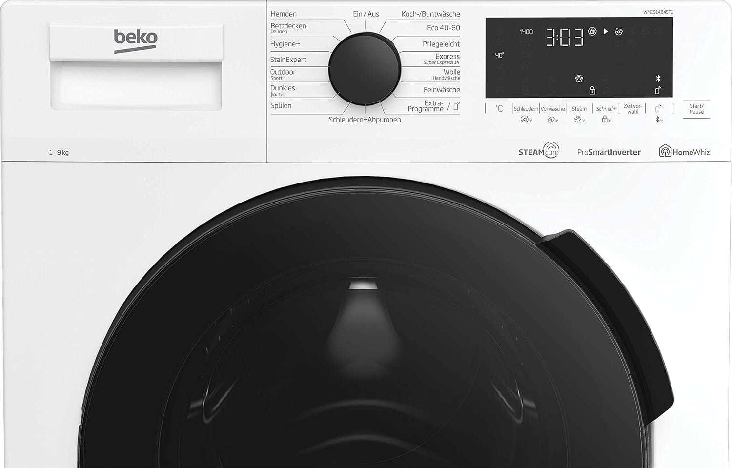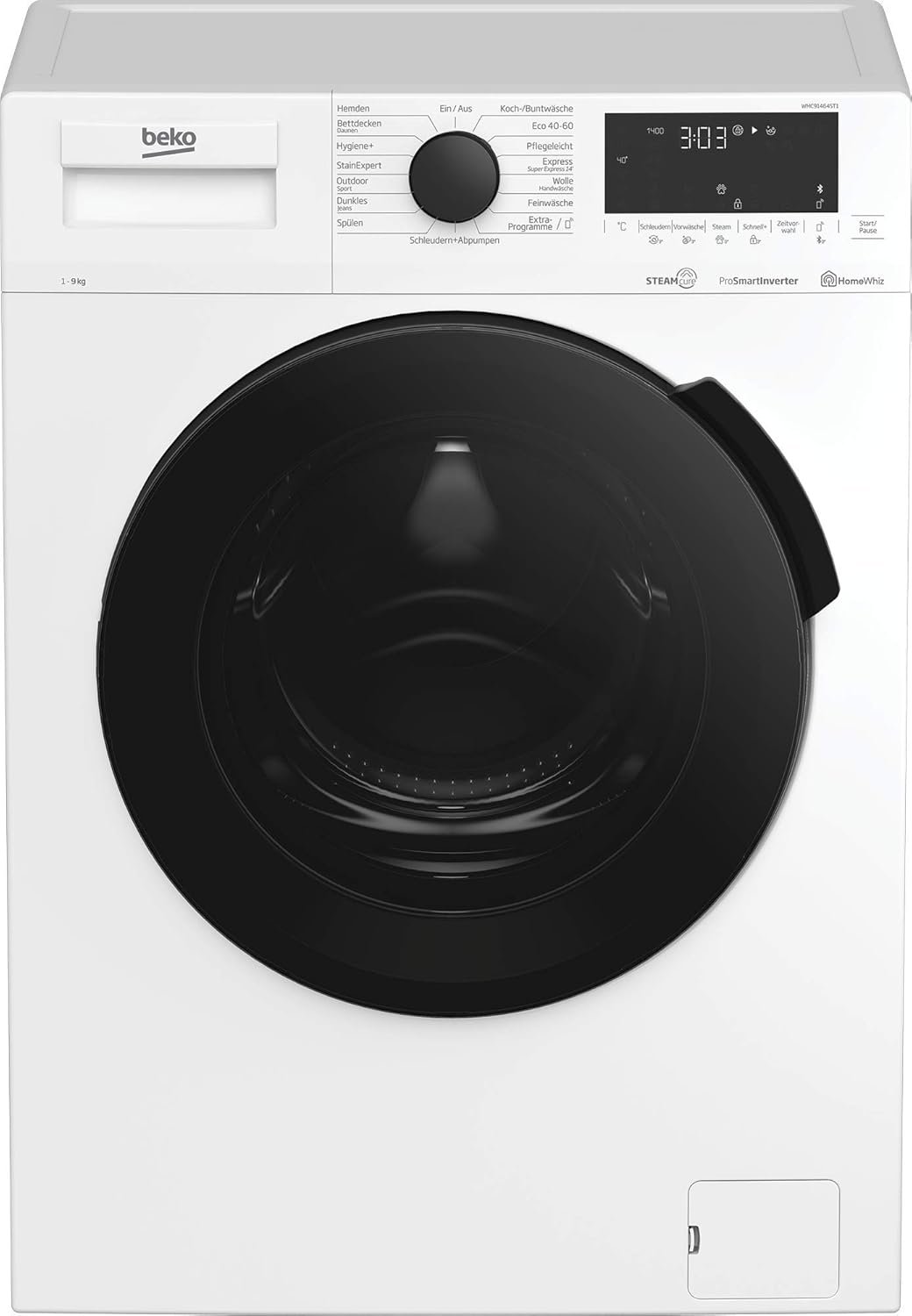 Beko WMC91464ST1 B300 WASCHVOLLAUTOMAT, WASCHMACHINE, 9 KG, Bluetooth, Prosmart Wechselrichtermotor, Feuchtigkeit, Haustier -Haarentfernung, Wasserentfernung, Wasserafel+, Weiß