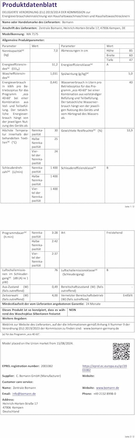Be the first to review “Bomann® Waschmaschin 7 kg | Max. 1400 u/min | 10 Jahre Motor-Garantie | Effizierer, Leiser & Langlebiger Invertermotor | 15 Programm | Endzeitvorwahl | LED-Display | Waschmaschine | WA 7175 Weiß”