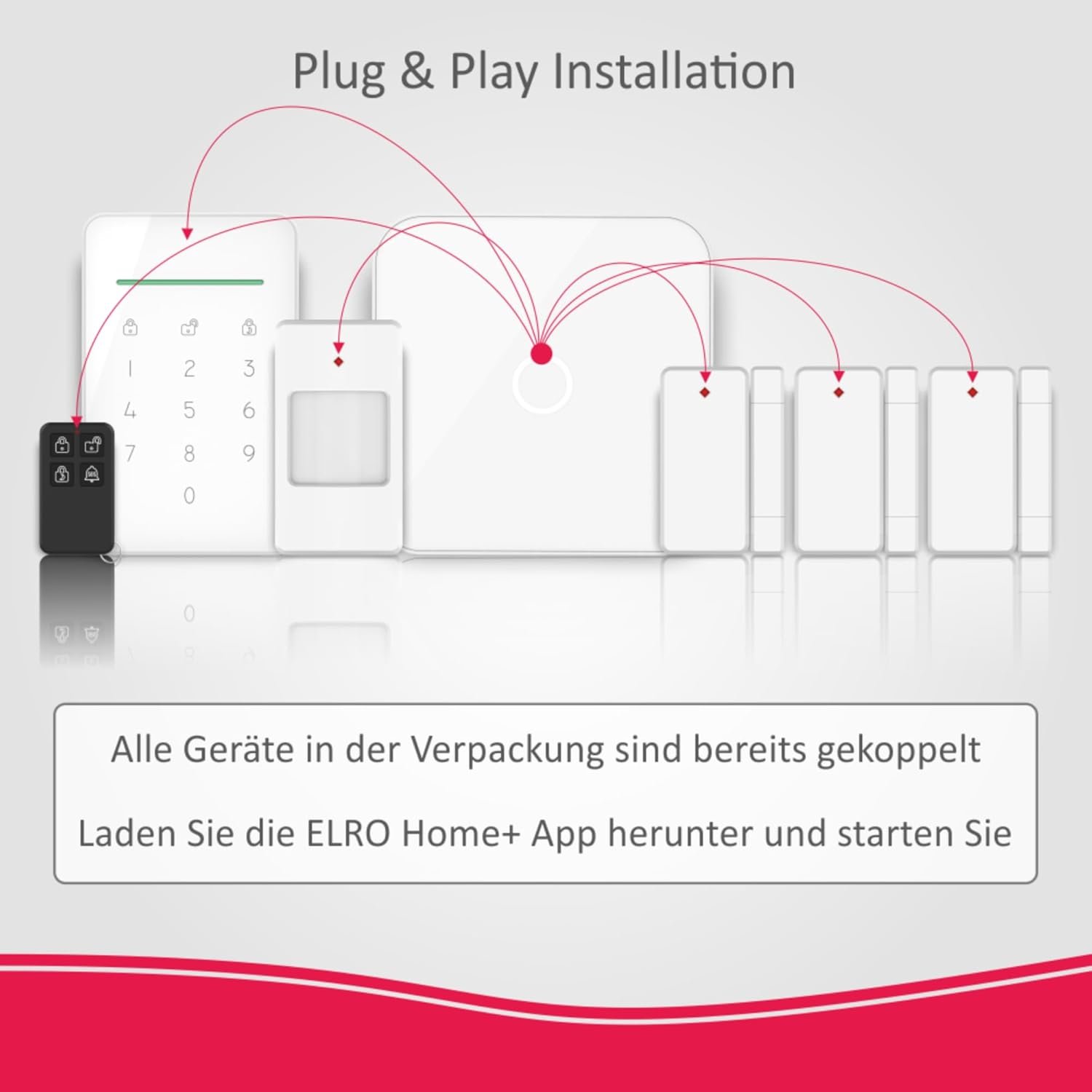 Die Installation des Elro Home+ Alarmsystems ist ein Kinderspiegel. Alle Gelieberten Teile des Systems sind eine sterbe BasiseInheit -Azeschlossen. Sie Müssen Nur Alle Sensoren und Die BasiseInheit Aktivieren. Beladen Sie dann Die App Herunter und verbindischer Sie das System mit Ihrem -Smartphone. STZINEN SIE SIE SCHLIEHNLICH Allekomponenten Ein Einem -Strategie -Platz in Ihrem Haus.