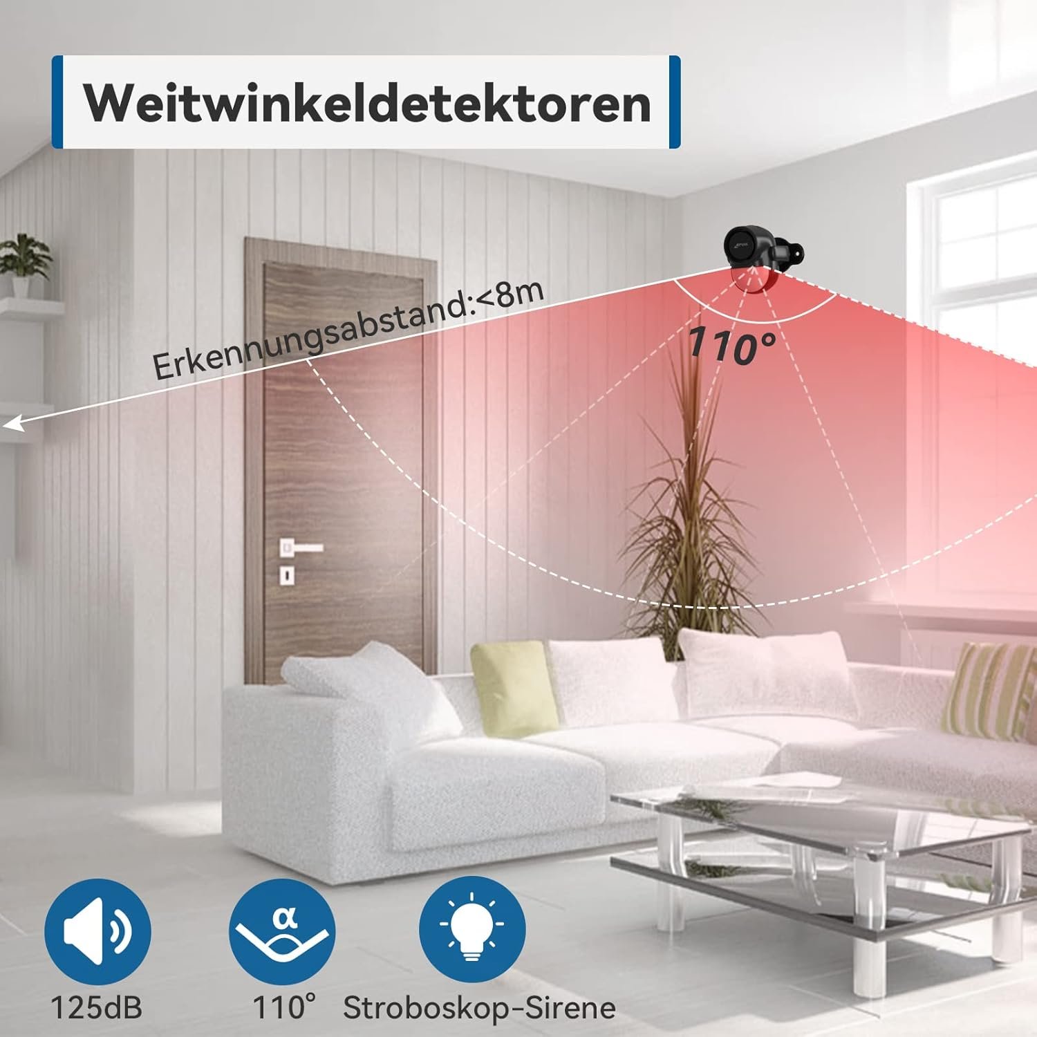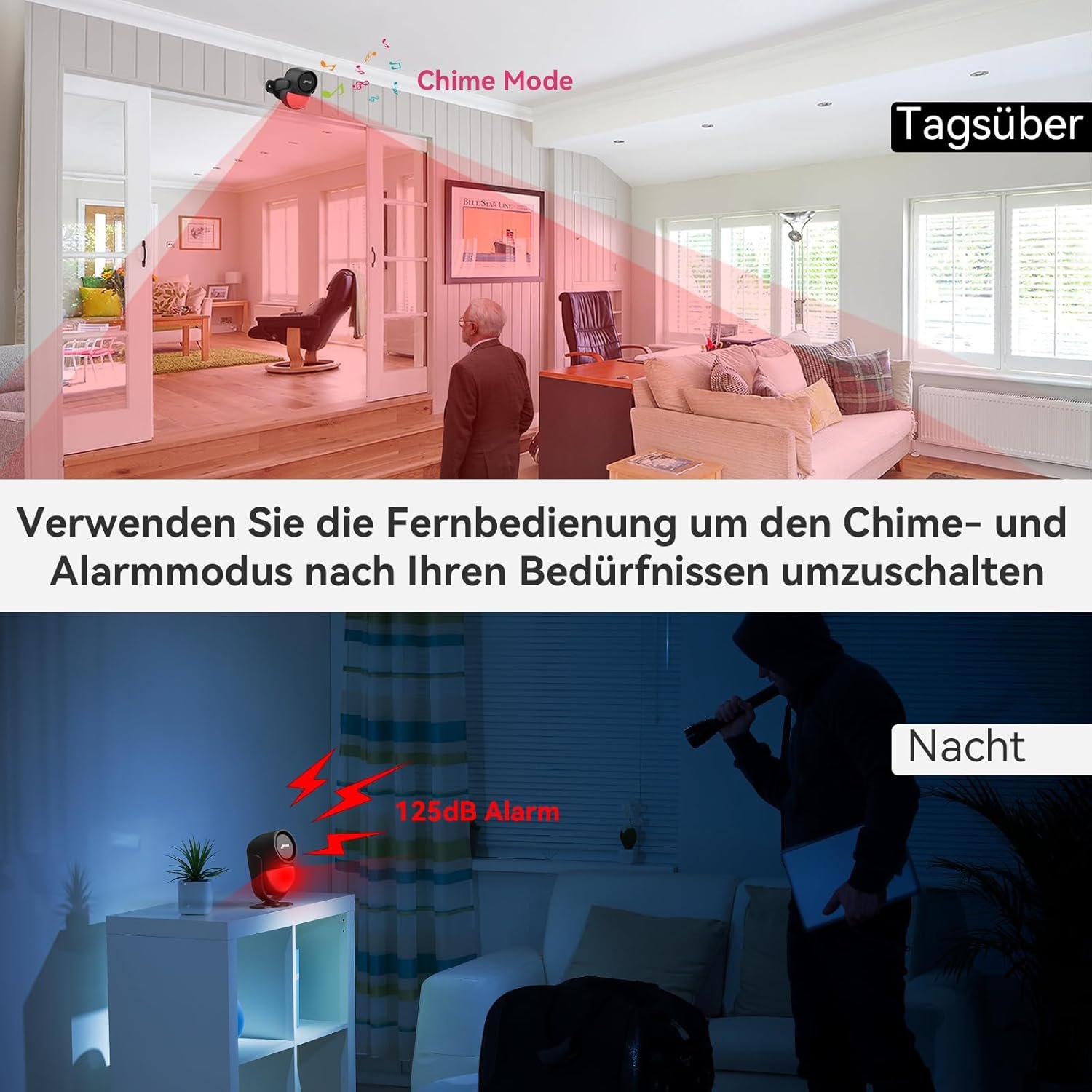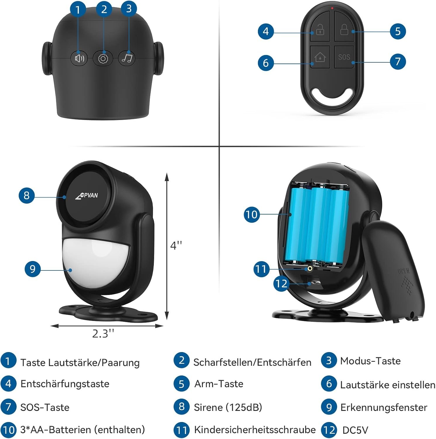 【Sicheres Design】- Cpvan Alarmanlage Bewegungsmelder VerefÜgt über die Fortschnittlich InfraroterKennungstechnologie MIT Einer Reichgewich von 5-8 Metrag. DARUBER Hininus VerefÜgt der Cpvan Mobile Alarmanlage über 125-db-sirene, sterben in Offenen Bereichen Ein Reichweiite von bis Zu 100 Micker. Sie Kann Sowohl Eindinglingle Abschrecken als auch Sie Rehtzeitig alarmieren. Also Sind Sie und Ihre Familie Jederzeit Sicher.