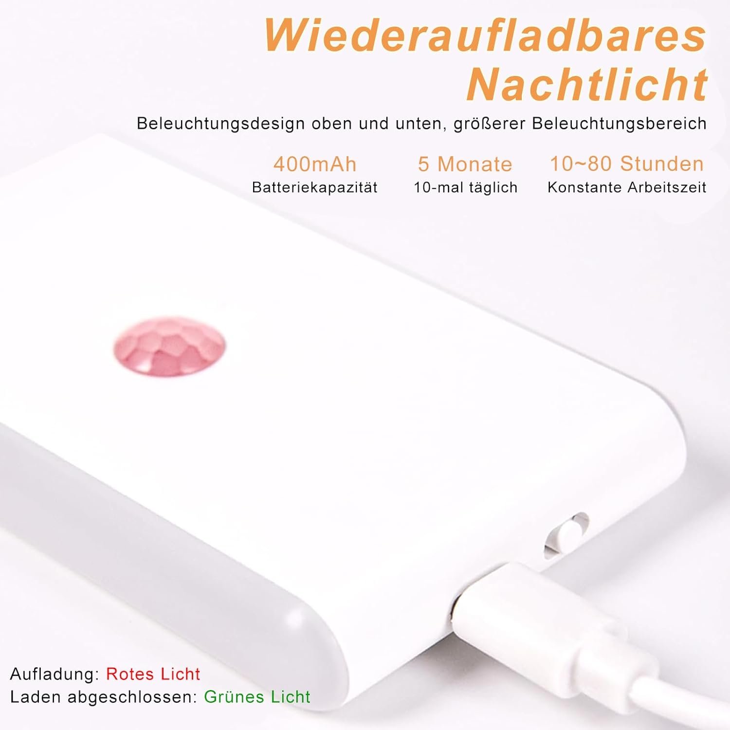 Wiedenaerafladbares nachtlicht: Die Mini-FlurlichT-Verfültung über Einen EINGEGAUTEN 400 MAH AKKU, der über die Mitgelieferte USB typ-C Ladekabel aufeladen werden Kann. Ich bin immer auf Modus kann uner BewegungsSensor Licht Indoor für Acht Stunden Kontinuierlich Verwendet Werden. Im BewegungsSensor-Modus können Sie bis zu ZU Zwei Monate Verwendet Werden. Der Maximale Stromverbrauch der Kleinen Treppenleuch im Innenberich Betrotägt Nur 0,6W war Hilft Stromradunten zu Sparen und Die umwelt Zuzen.