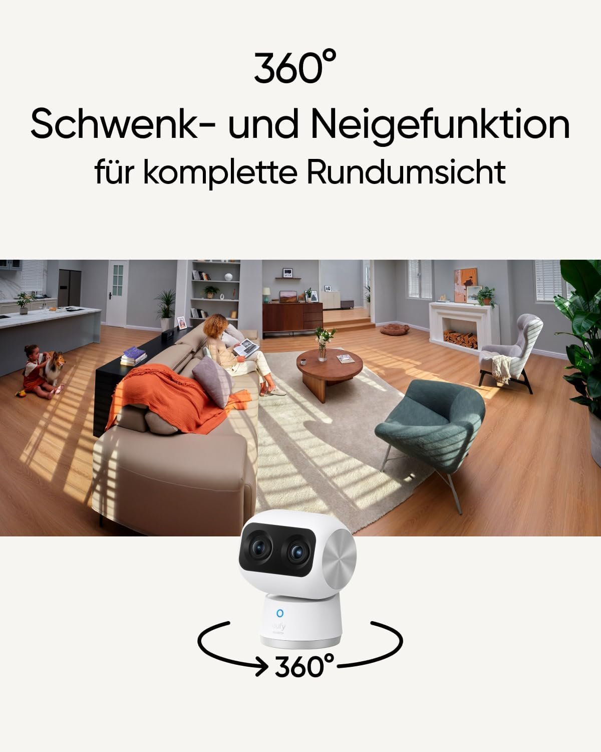 Eufy Security Indoor Cam S350, Dual Kameras, 4K, überwachungskamera innen MIT 8 × Zoom und 360 ° PTZ, KI, Dual-Band-Wi-Fi 6, Sicherheitkamera innen, Videoüberwachung