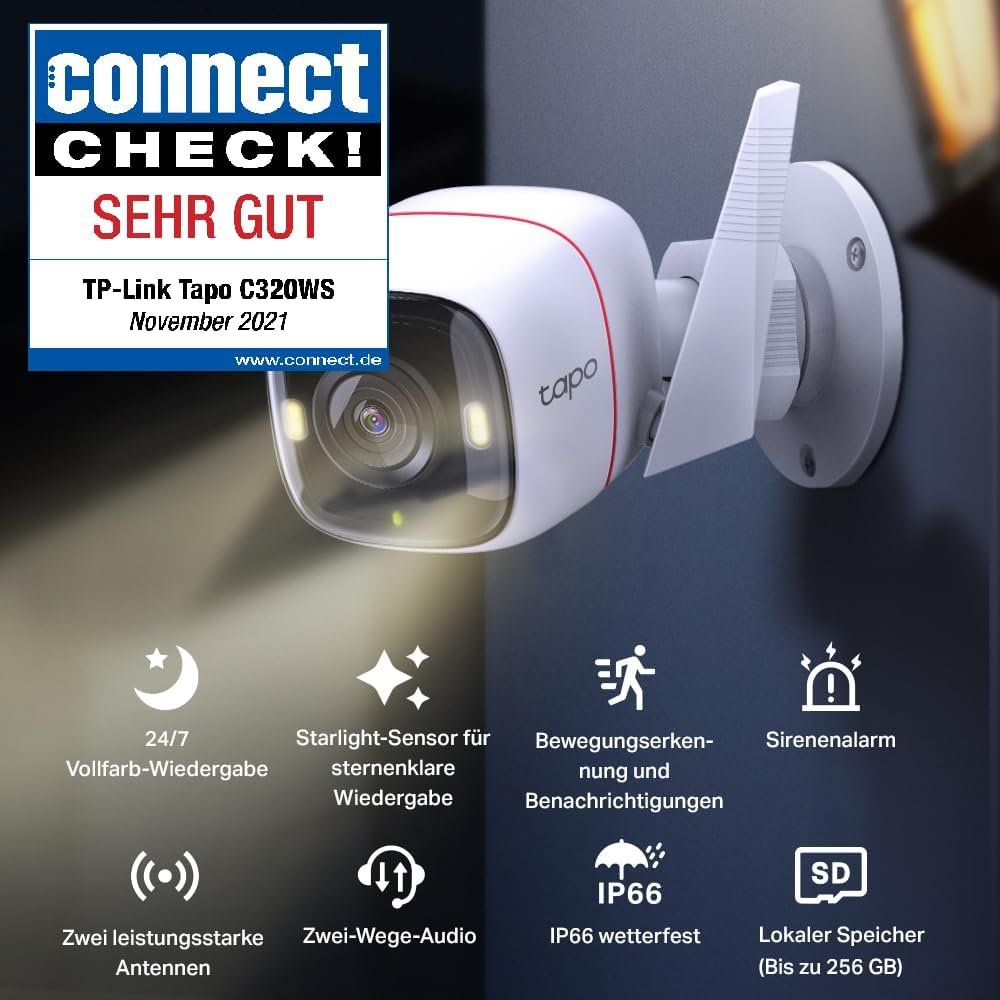 TAPO TP-LINK C320WS Überwachungskamera außen, Wlan ip Kamera, 4MP Hochauflösung, 30m Vollfarb-Nacht-Wicht, Bewegungsserkonung, IP66 Wasserdicht, Alarmmeldung, Zwei Audio, 1 Stüreldung, 1 Stugkkkk, 1 Stür