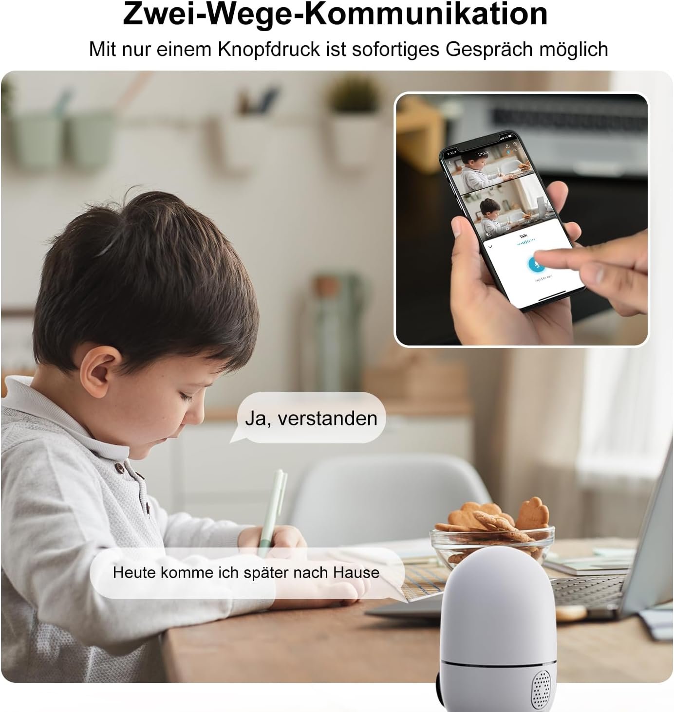 【Zwei-Wege-Audio & Gerätefreigabe】 Die Kamera Verügt über Integrieres Mikrofon und Einen lautenspecher, Sodass Sie Jederzeit Mit Ihrem Baby, ihrer familie ohr ihren haarizieren kommunizier korrizieren kölnnen. DAUBER Hinausk Können Sie die Kamera mit Anderen Familienmittgliedern Teilen, umgemeinsam für die Sicherheit Ihres Zuhauer Zu Sorg.