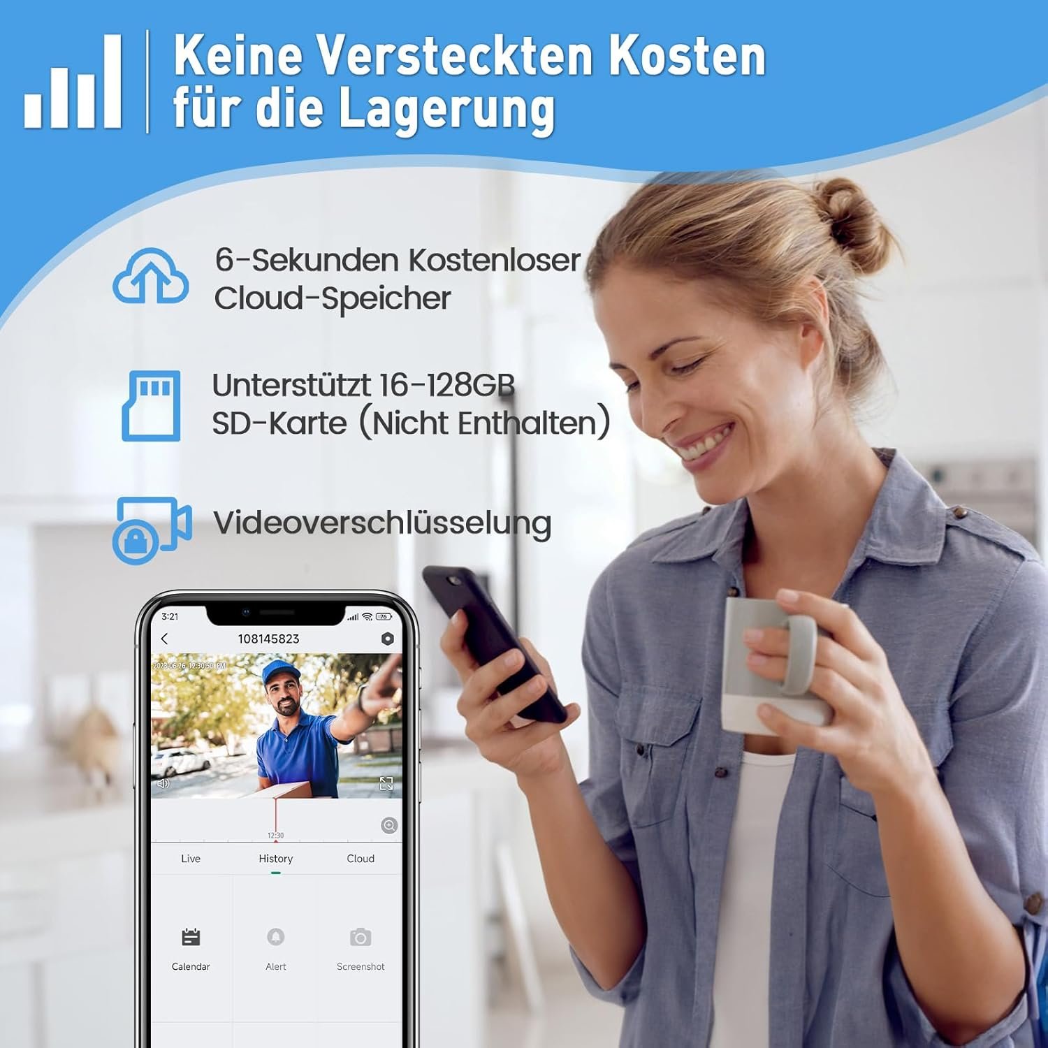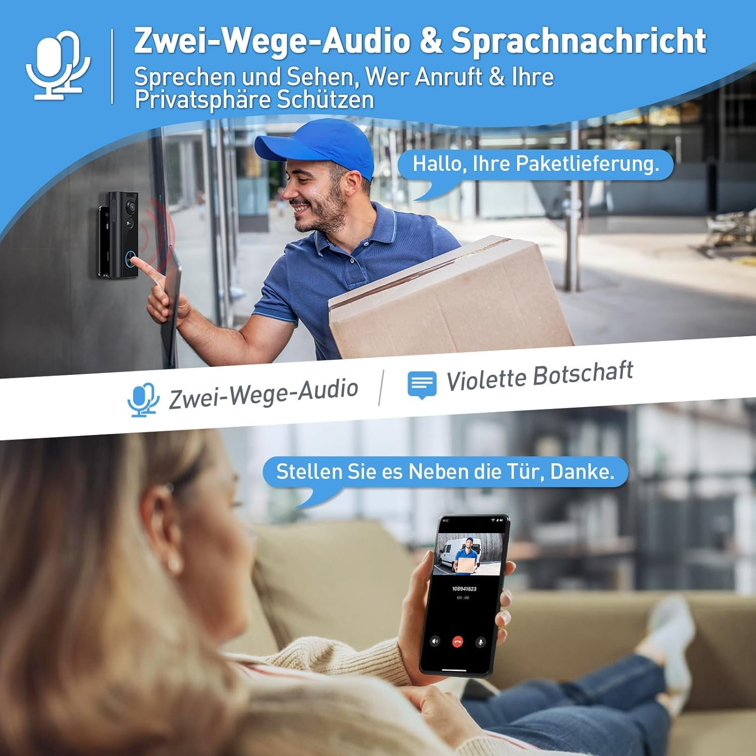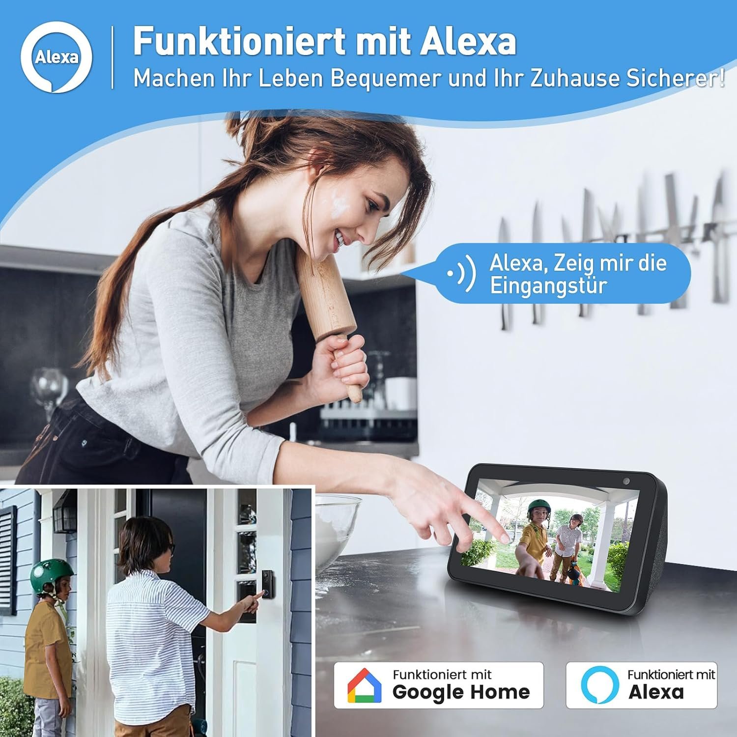 Zwei-Wege-AnRufe und Live-Bilder: Verenn ein Beseucher Die türklingel mit Kamera Drückt, Werden Siedurch der Angebachten Klingelton Alarmiert, Wähhrend ihr telefon ass Alexa Eine Bennichtigung Erhäl und und kamer und kamer und kamer kamer kamer kamer kamera rechtze Echtzeitgesprächer der Person ein der Tür Zuschau