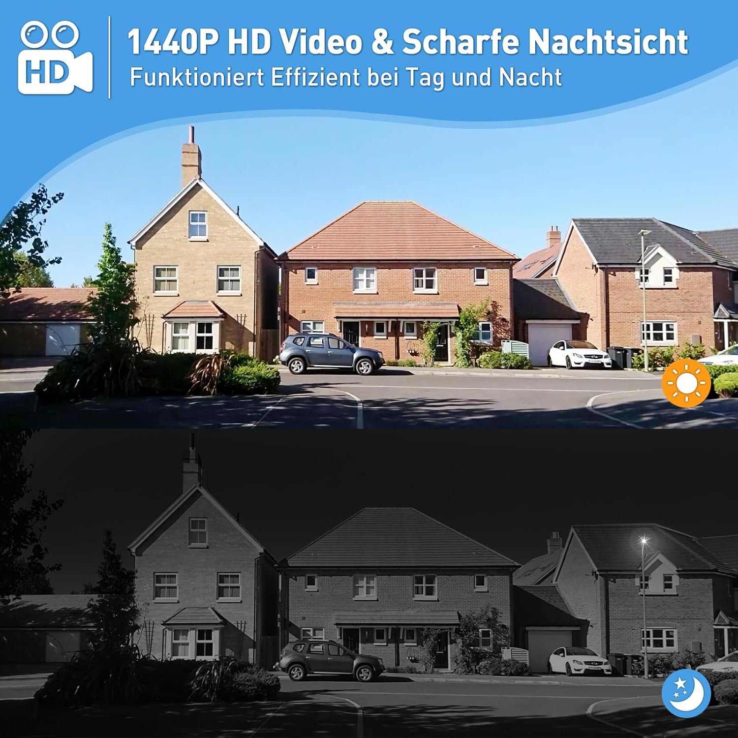 1 Pir-BewegungSerKennung 2 Kristallklares 2K-Video 3 SD-Karte/Cloud-Speicher 4 Zwei-Wege-Audio